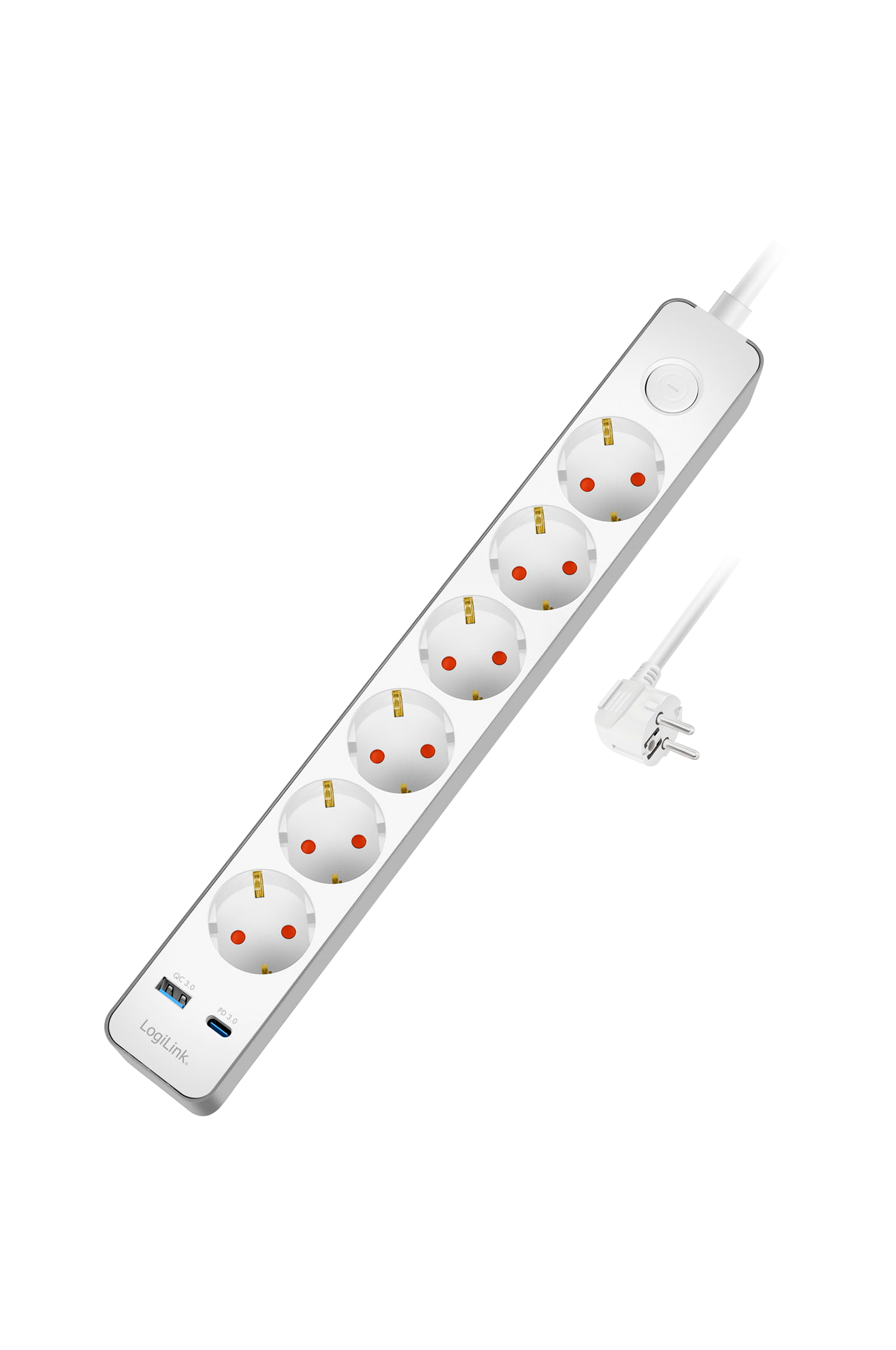 • LogiLink grenuttag med 6 uttag, USB-C PD 20W och USB-A QC laddningsportar