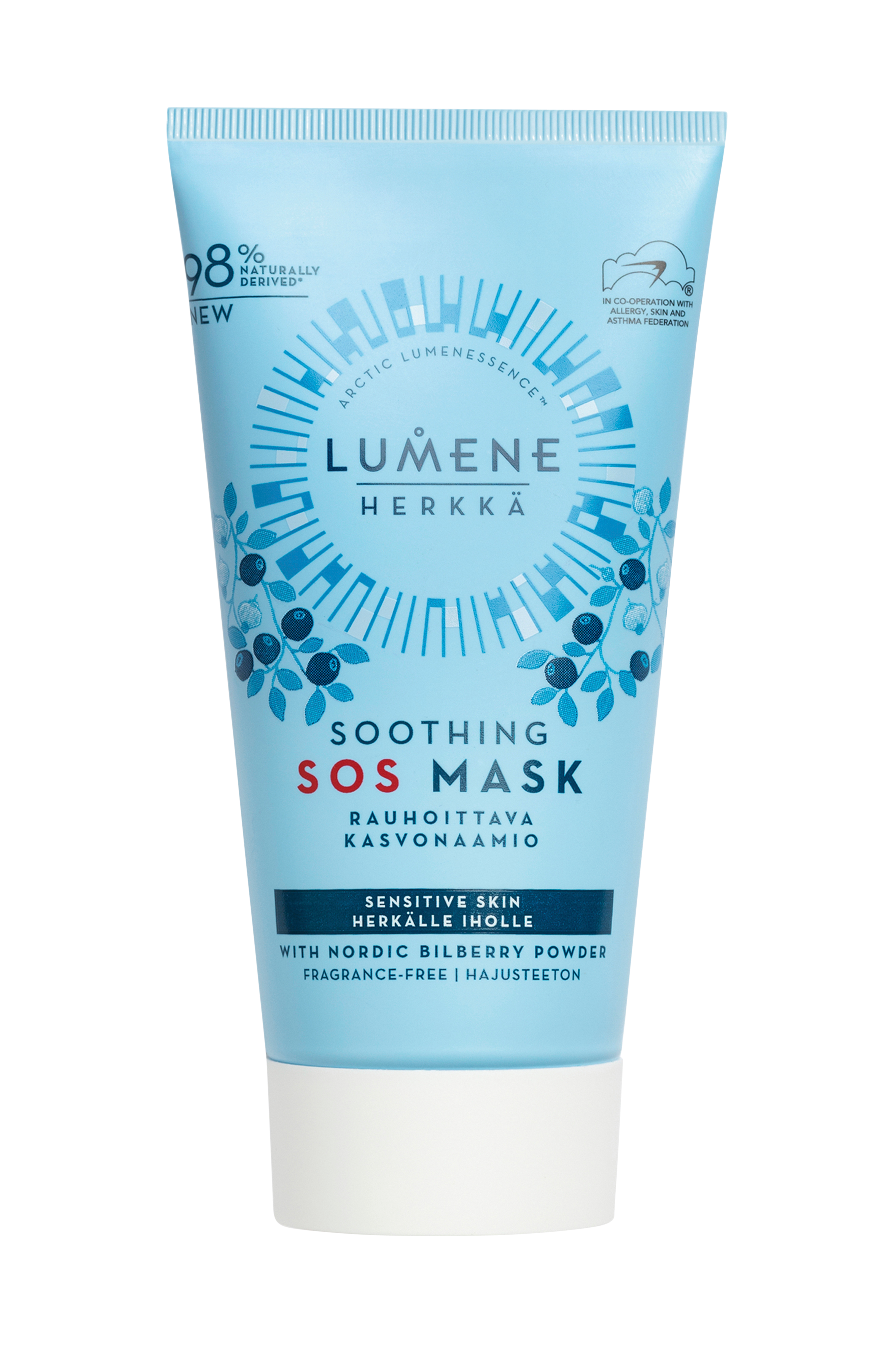 En krämig, lugnande ansiktsmask berikad med blåbärsfiber och blåbärsfröolja samt arktiskt källvatten som undsätter känslig hy från rodnad i samband med hudtorrhet och ger 24 timmars intensiv återfuktning. Formulan är parfymfri och har utvecklats i samarbete med Allergi-, Hud- och Astmaförbundet i Finland. Passar för känslig hy. 100 % vegansk.