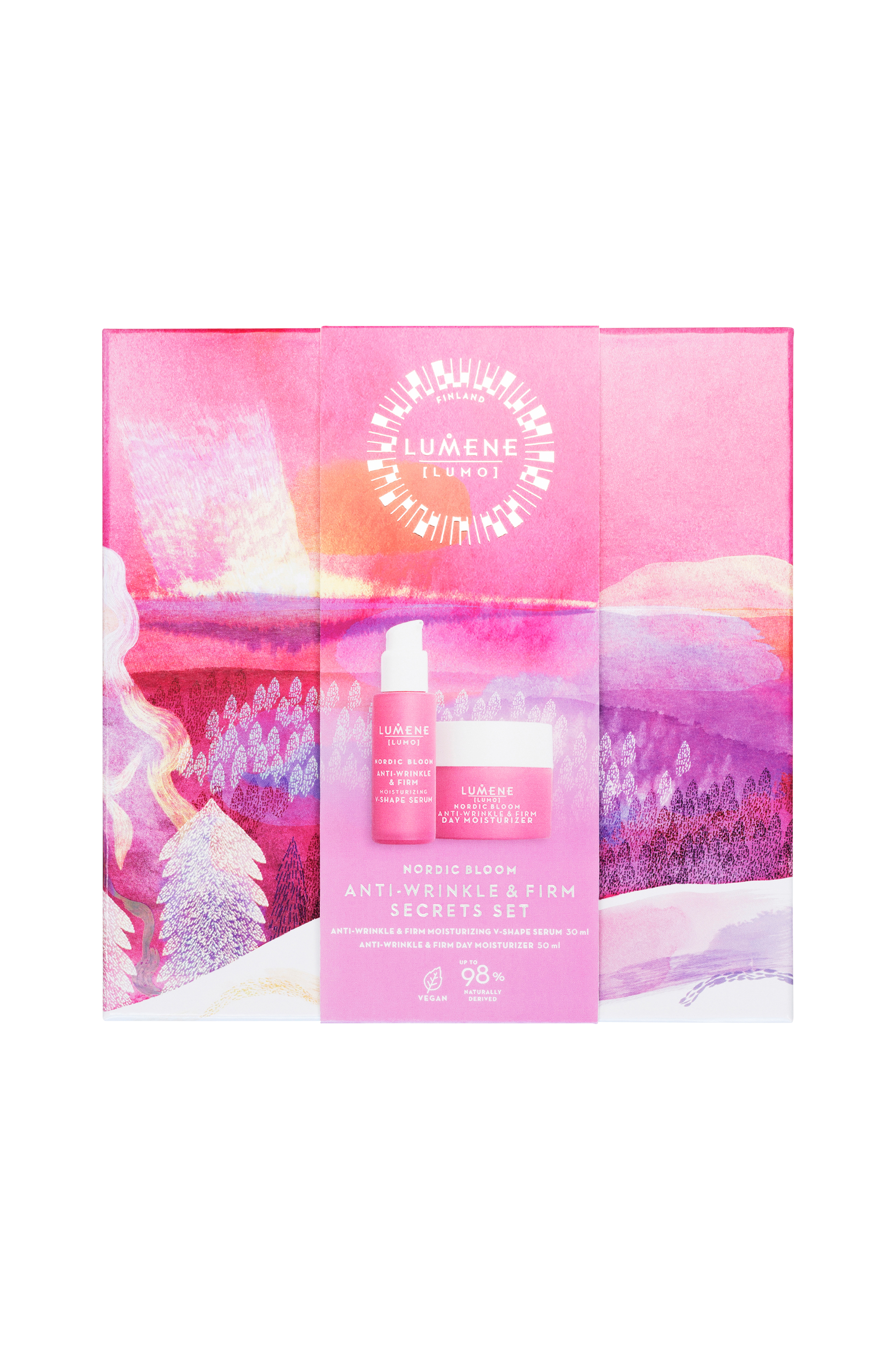 Set för en fastare, jämnare och mer strålande hud – ett lystergivande serum som får huden att se jämnare och fastare ut och en återfuktande dagkräm som gör rynkor mindre framträdande.