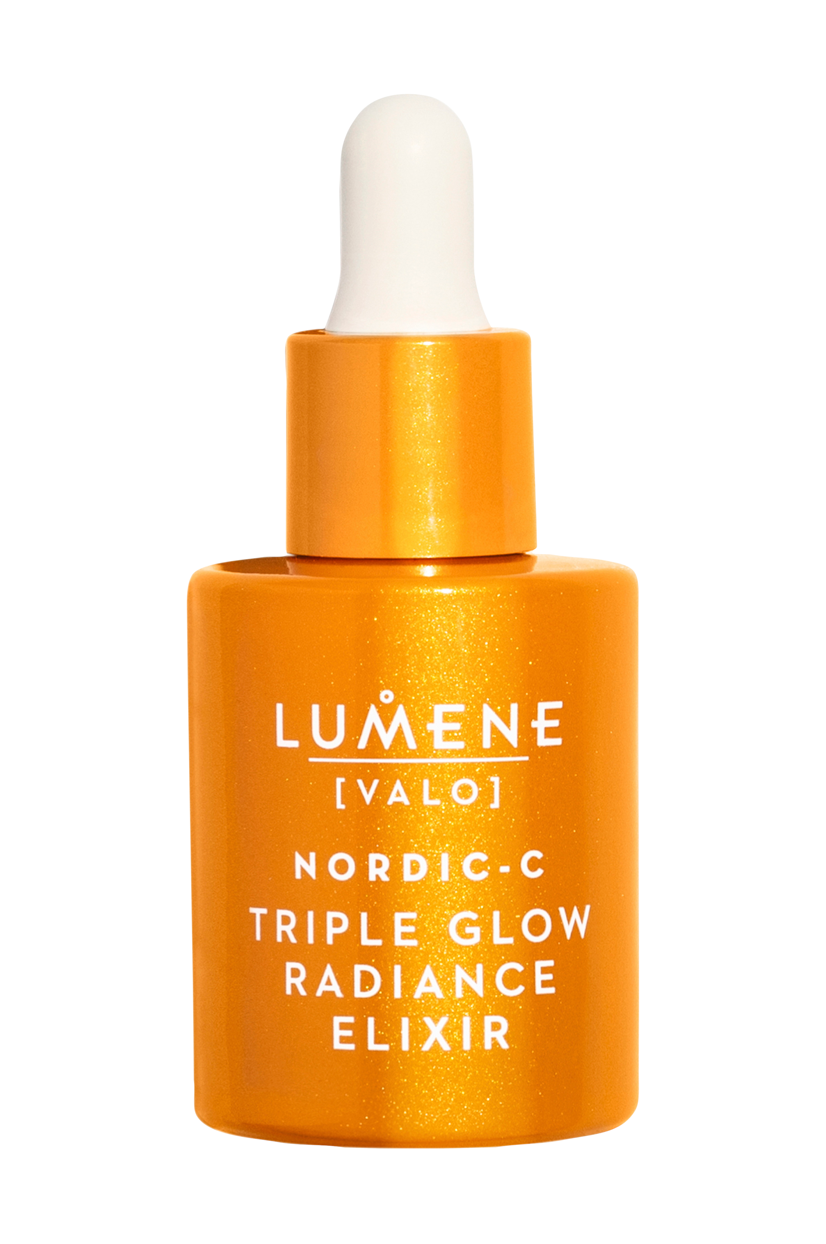 Nordic-C Triple Glow Radiance Elixir är ett effektivt serum fylld med antioxidanter som är utvecklat för att boosta lystern, ge intensiv återfuktning och skydda hudens ungdomliga utseende. Det lyxiga, silkeslena serumet innehåller trippel antioxidantkraft av stamcellsextrakt från nordiska hjortron utvecklat med hjälp av bioteknik, C- och E-vitamin samt inkapslad ferulsyra. Sammansättningen har utvecklats för att förhindra och minska de första tecknen på åldrande och hjälper till att förbättra hudens elasticitet, fina linjer och gör så att hudtonen får ett jämnare utseende. Huden ser fylligare, slätare och ungdomligt strålande ut. Produkten är vegansk och innehåller råvaror erhållna och förädlade från biprodukter samt ingredienser från den nordiska naturen. Förpackningen är gjord av återvinningsbara material. Tillverkad i Finland.