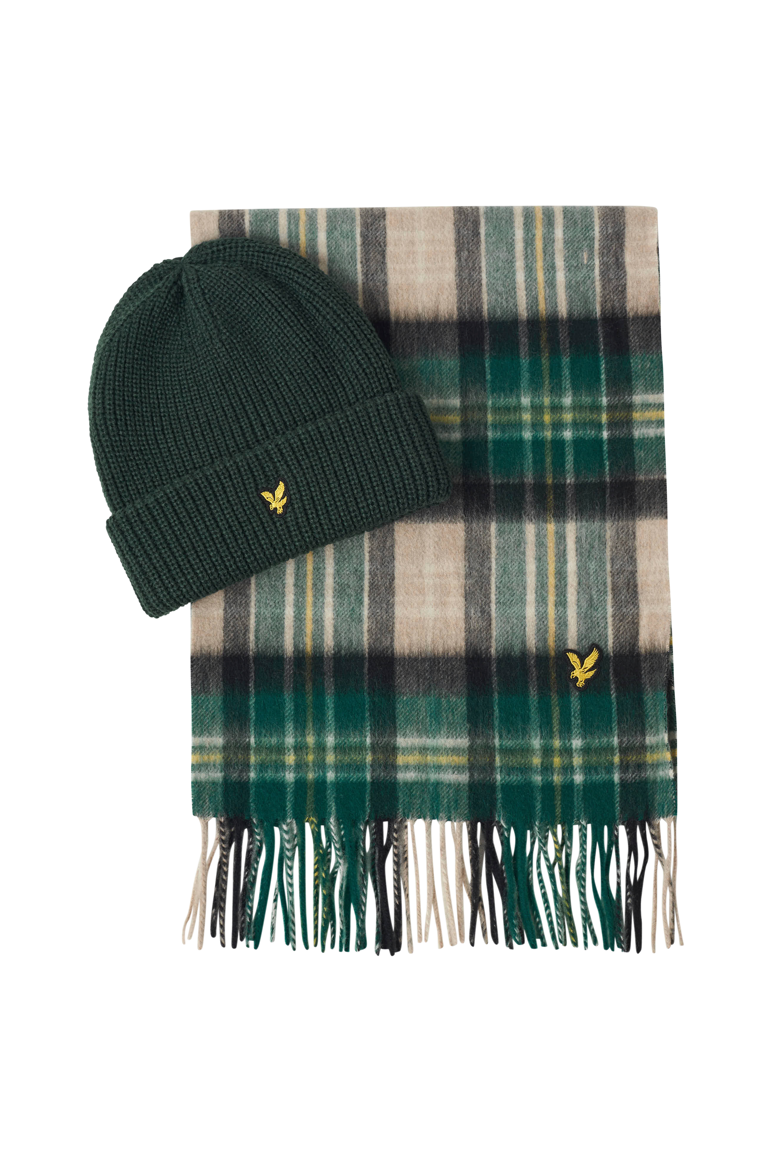 • Set i ullblandning• Stickad mössa med dubbla lager• Uppvikt nederkant med logga fram• Mjuk, stickad halsduk med fransar på kortsidorna• Stl 31x164 cm