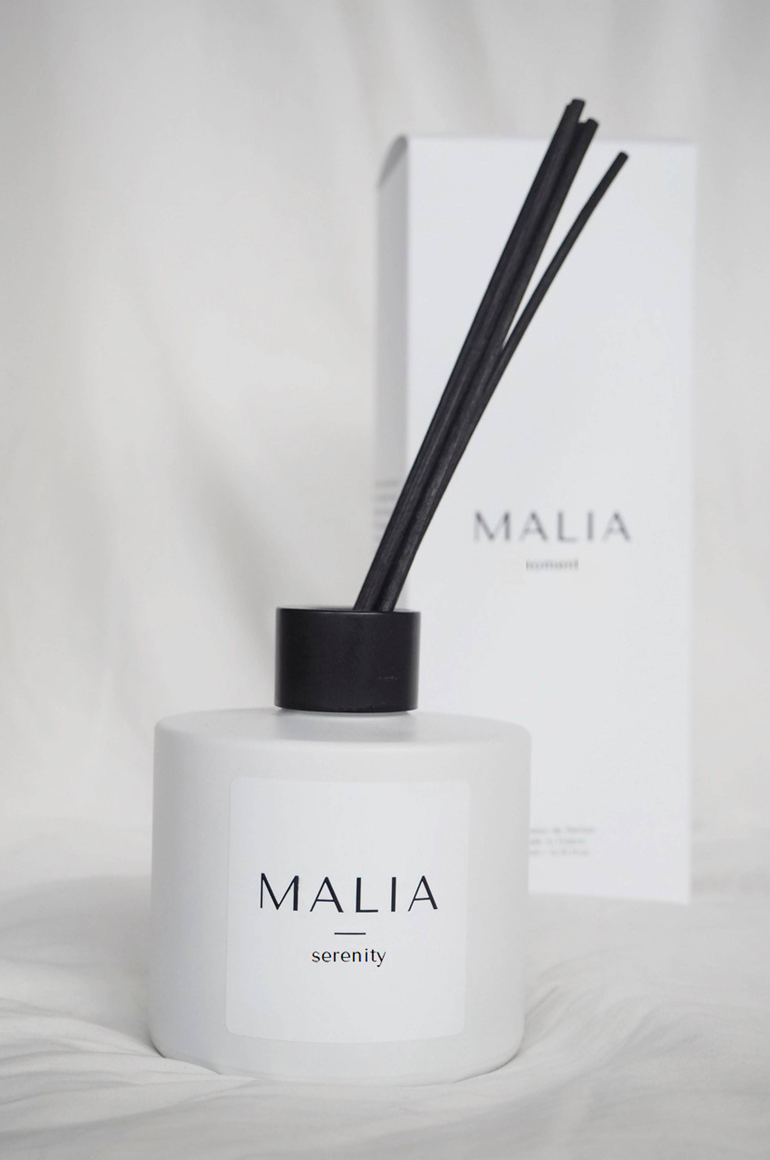 Malias lyxiga doftdiffuser är handgjord i Frankrike med naturlig alkohol, eteriska oljor och utvalda, franska dofter. Flaskan är gjord av matt, handtryckt glas.