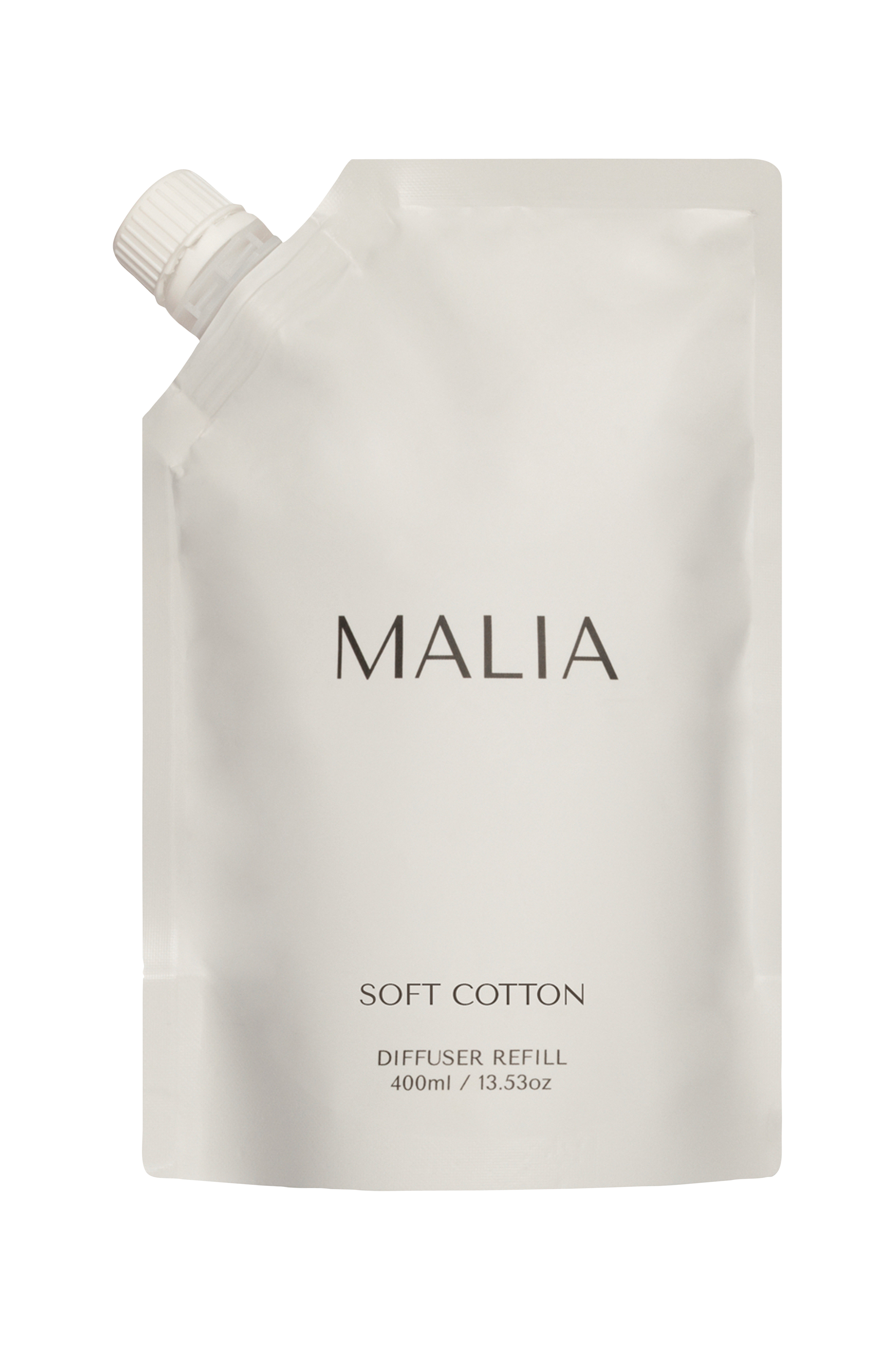 Tilltalet av ett rent hem, ny tvätt eller ett fräscht lakan - ett flyktigt ögonblick som bara är tillräckligt långt för att transportera dig till känslan av en fräsch nystart. Den lugnande doften av Soft Cotton tillsammans med vanilj och mjuk mysk, inslag av päron och plommon skapar den perfekta illusionen av ett nystädat hem. Ingen skrubbning behövs. För att fylla på din Malia diffuser, öppna påsen och häll i önskad Malia glasflaska. Låt det ta 48 timmar för doften att fylla rummet med doft. Stäng locket ordentligt. Om någon vätska spills ut, torka den noggrant ren. All kontakt med huden ska tvättas omedelbart.