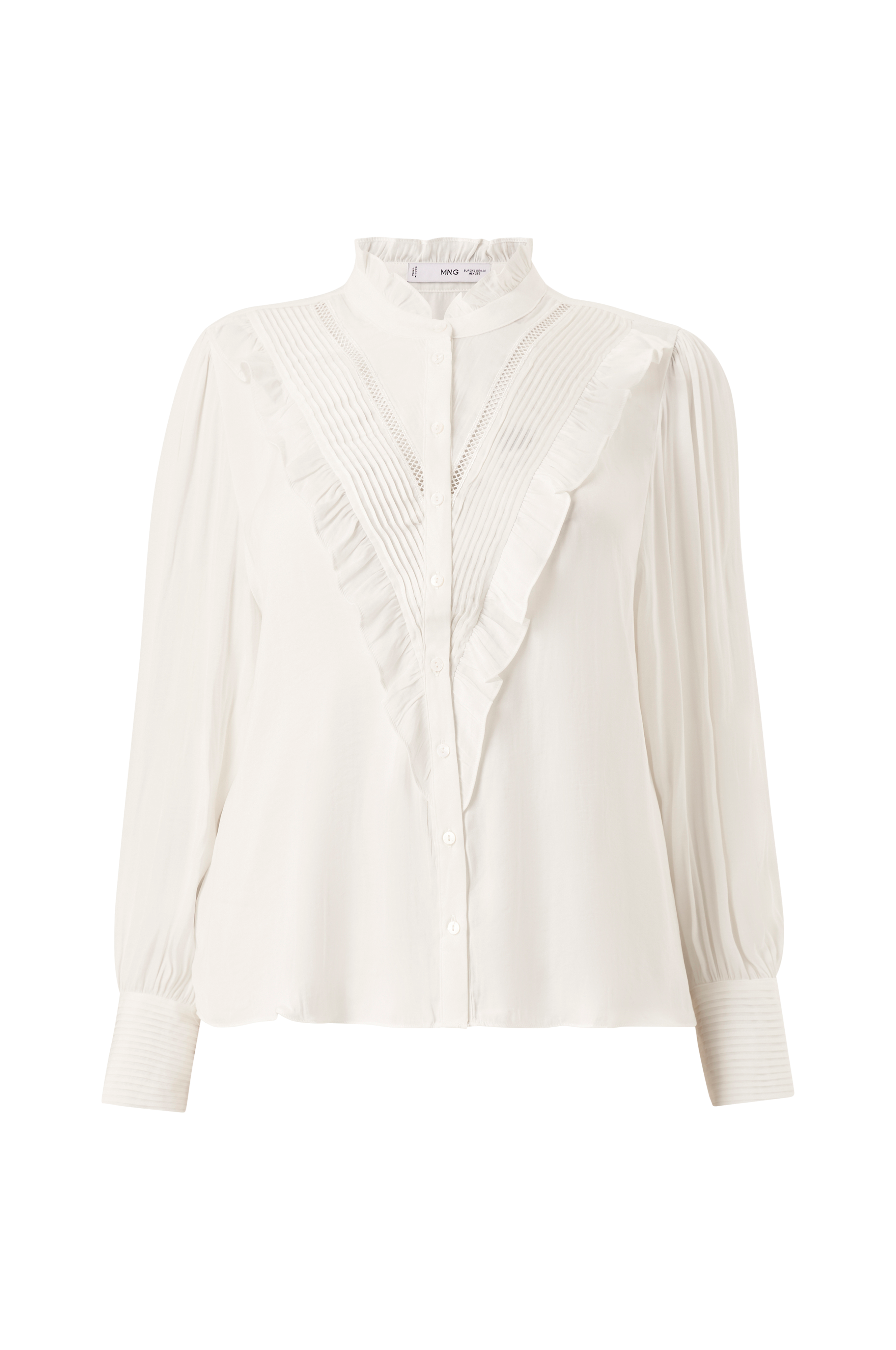 • Volang i halsen och fram• Sydda stråveck upptill fram och i ärmsluten• Knappar• Ballongärmar