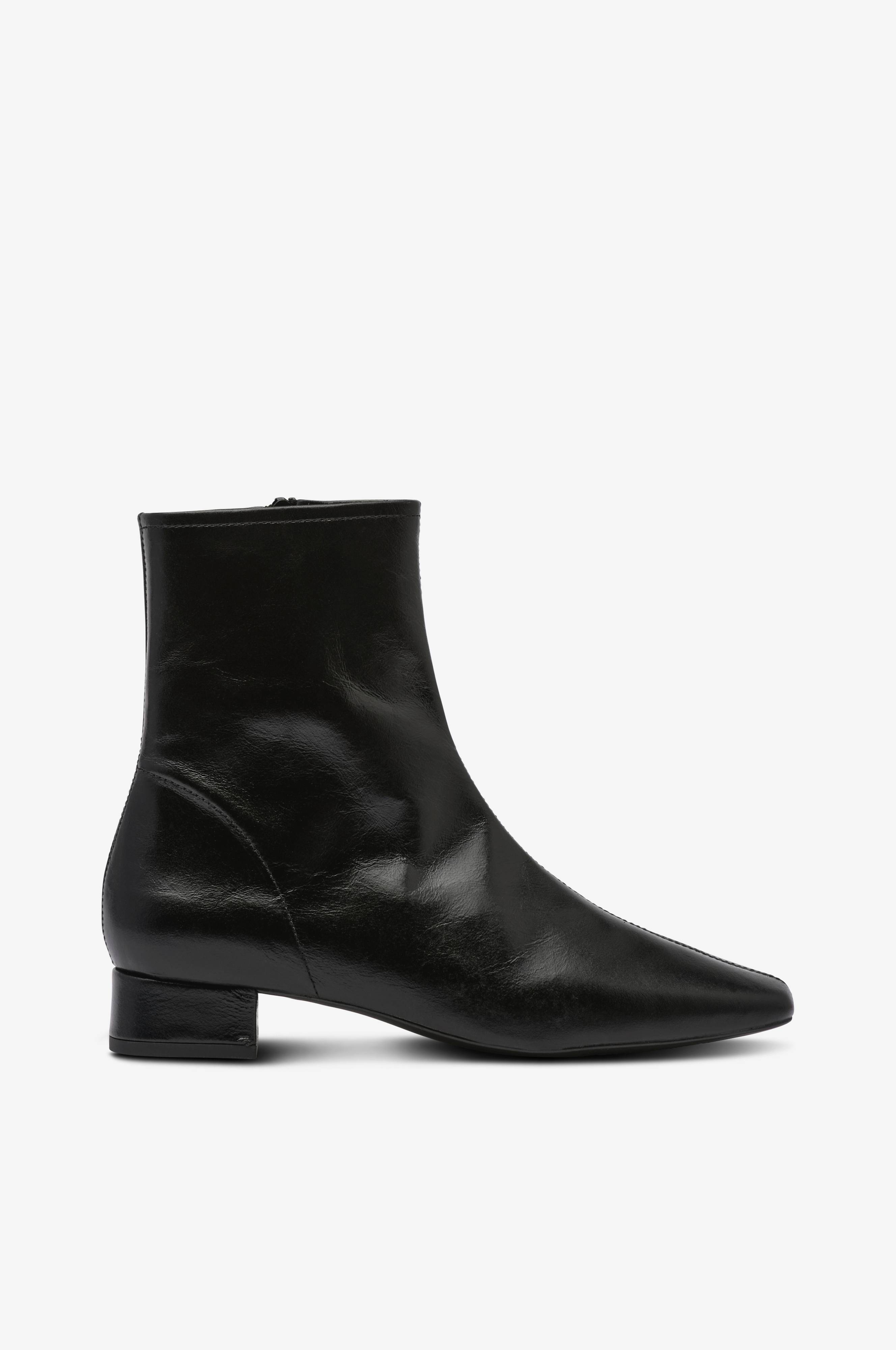 • Boots i blankt skinn• Dragkedja på insidan av skaftet• Fyrkantig tåform• Foder i skinn• Skinnklädd klack• Klackhöjd: 3 cm• Skafthöjd: 16 cm i stl 37