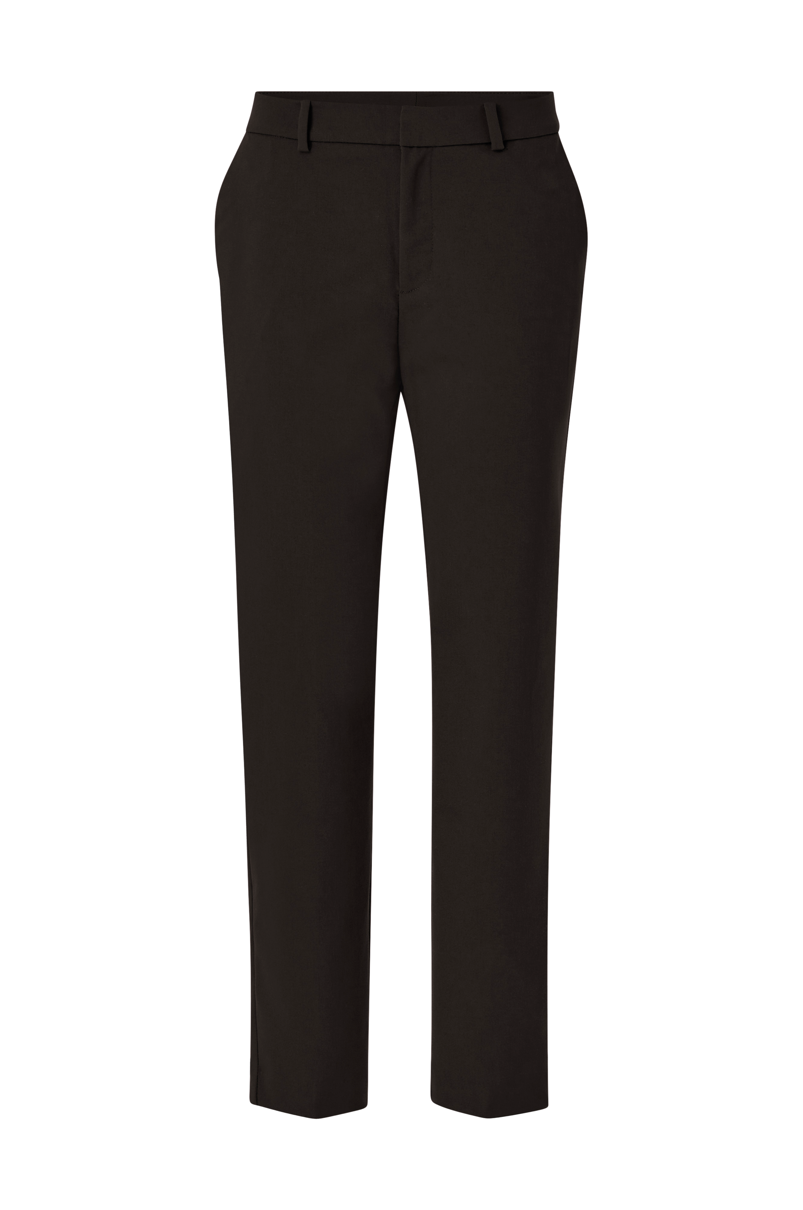 Dressade byxor med raka ben. Fickor i sidorna och en fuskficka bak. Hyska och hake i midjan.