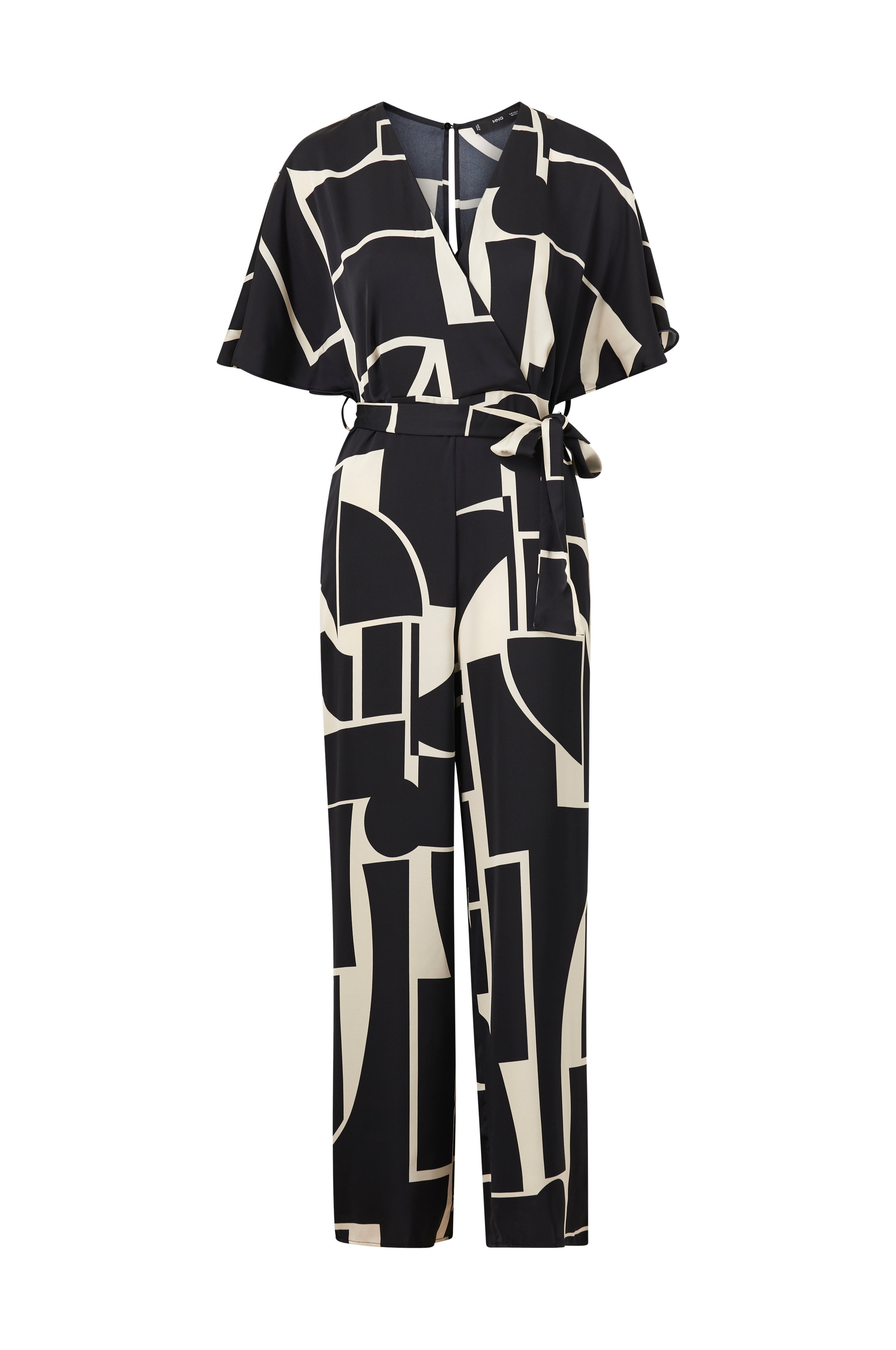 • Mönstrad jumpsuit i satin• V-ringning med omlott• Korta fjärilsärmar• Sprund med knapp i nacken• Dold dragkedja i ryggen• Knytskärp i midjan• Vida ben