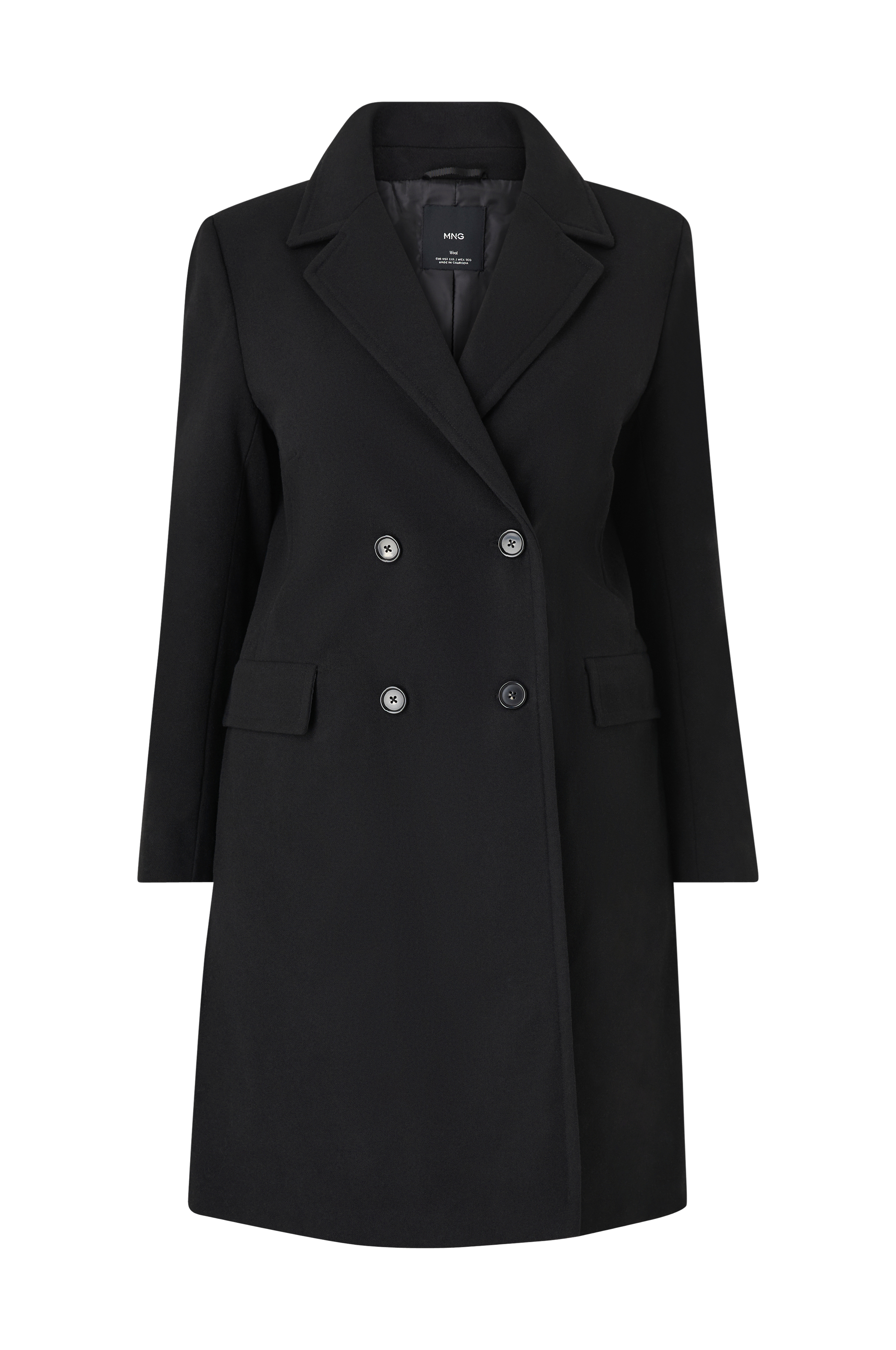 • Kappa i ullblandning • Dubbelknäppt modell • Två fickor med ficklock • Tre dekorativa knappar i ärmsluten • Sprund nedtill bak • Vävt foder • Plusstorlekar • Längd: 100 cm i storlek 48