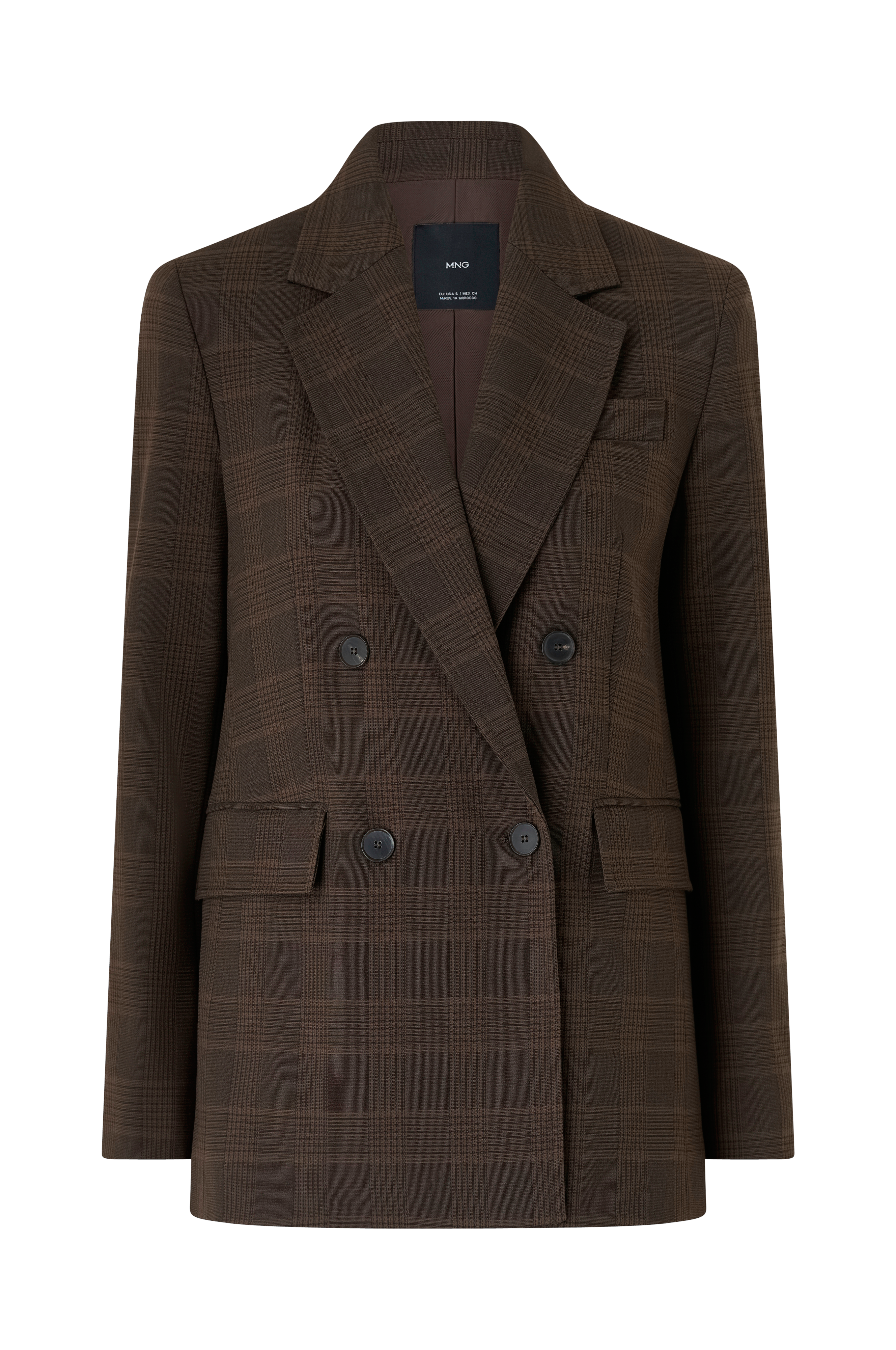 • Kavaj med krage och slag• Knappar i ärmsluten• Dubbelknäppning• Textilfoder• En fuskficka• Två passpoalfickor med lock• Sprund nedtill bak• Längd: 70 cm i storlek S