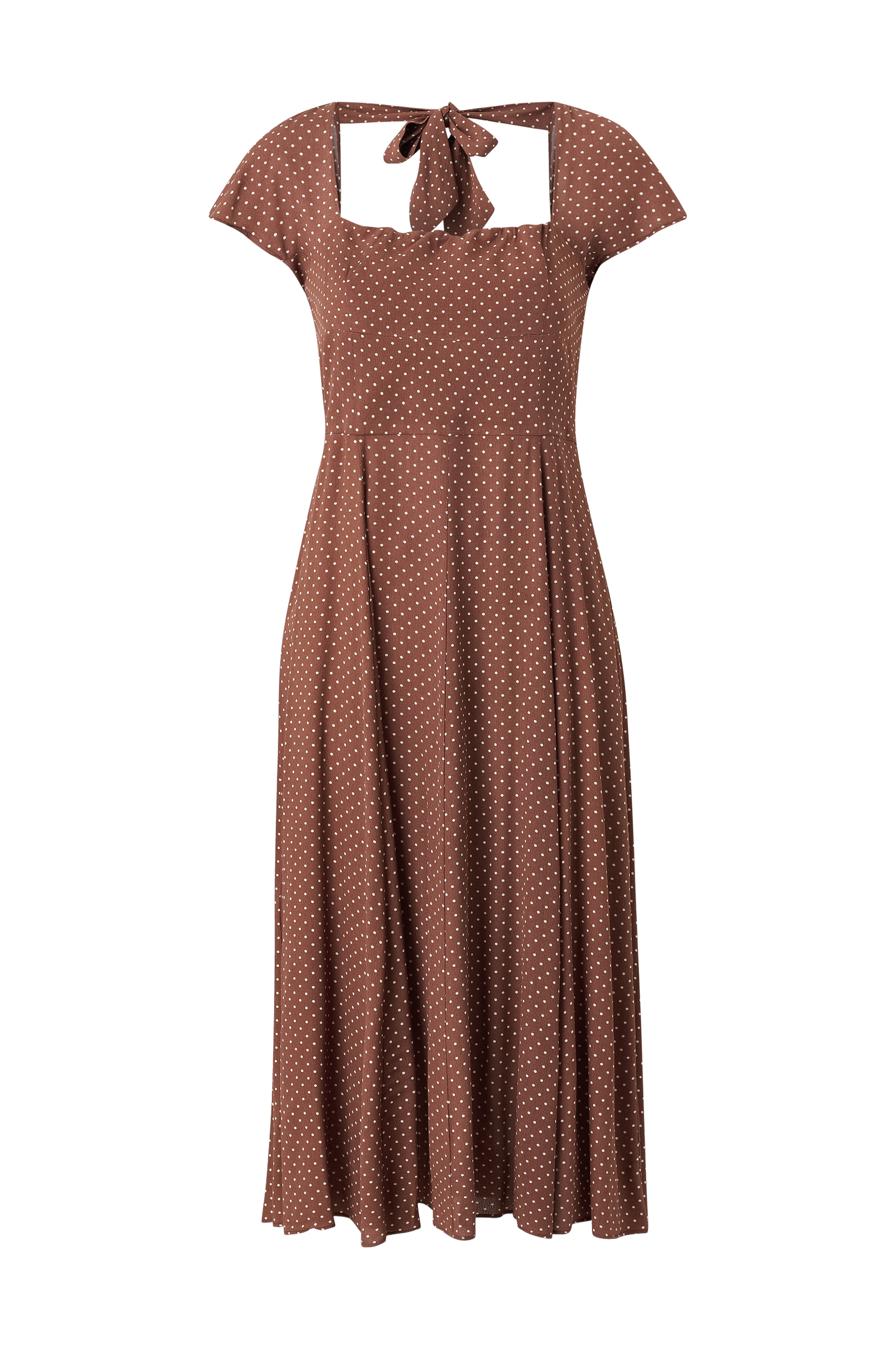 • Tunn midiklänning med prickmönster• Fyrkantig halsringning med knytband i nacken• Korta holkärmar• Dold dragkedja i ryggen• Avskärning i midjan• Utsvängd kjol• Foder upptill• Längd: 118 cm i storlek S