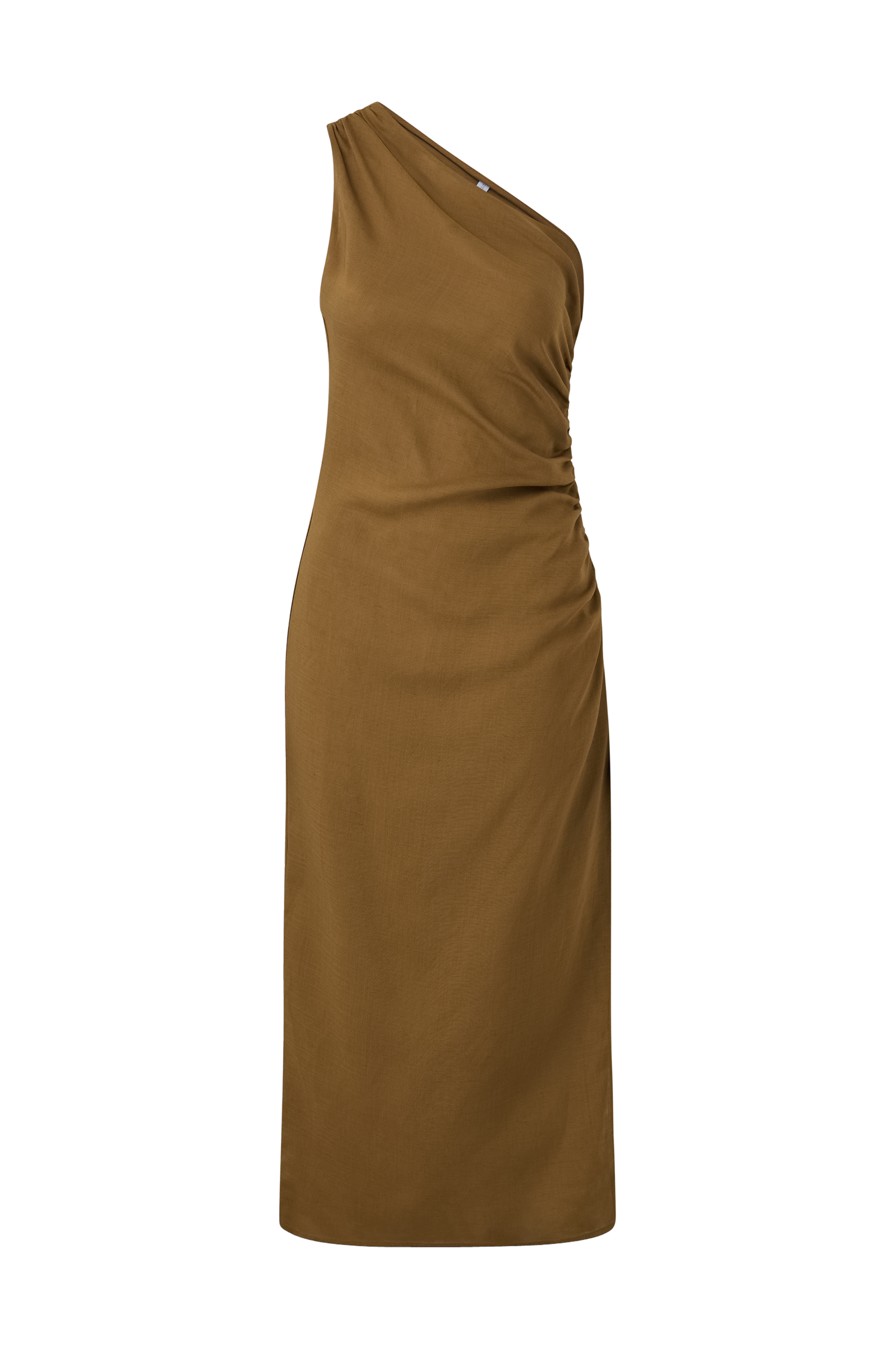 • Enaxlad klänning med struktur i linne• Dold dragkedja i ena sidan• Rynkad, dekorativ drapering• Slits nedtill i ena sidan• Längd: 124 cm i storlek S