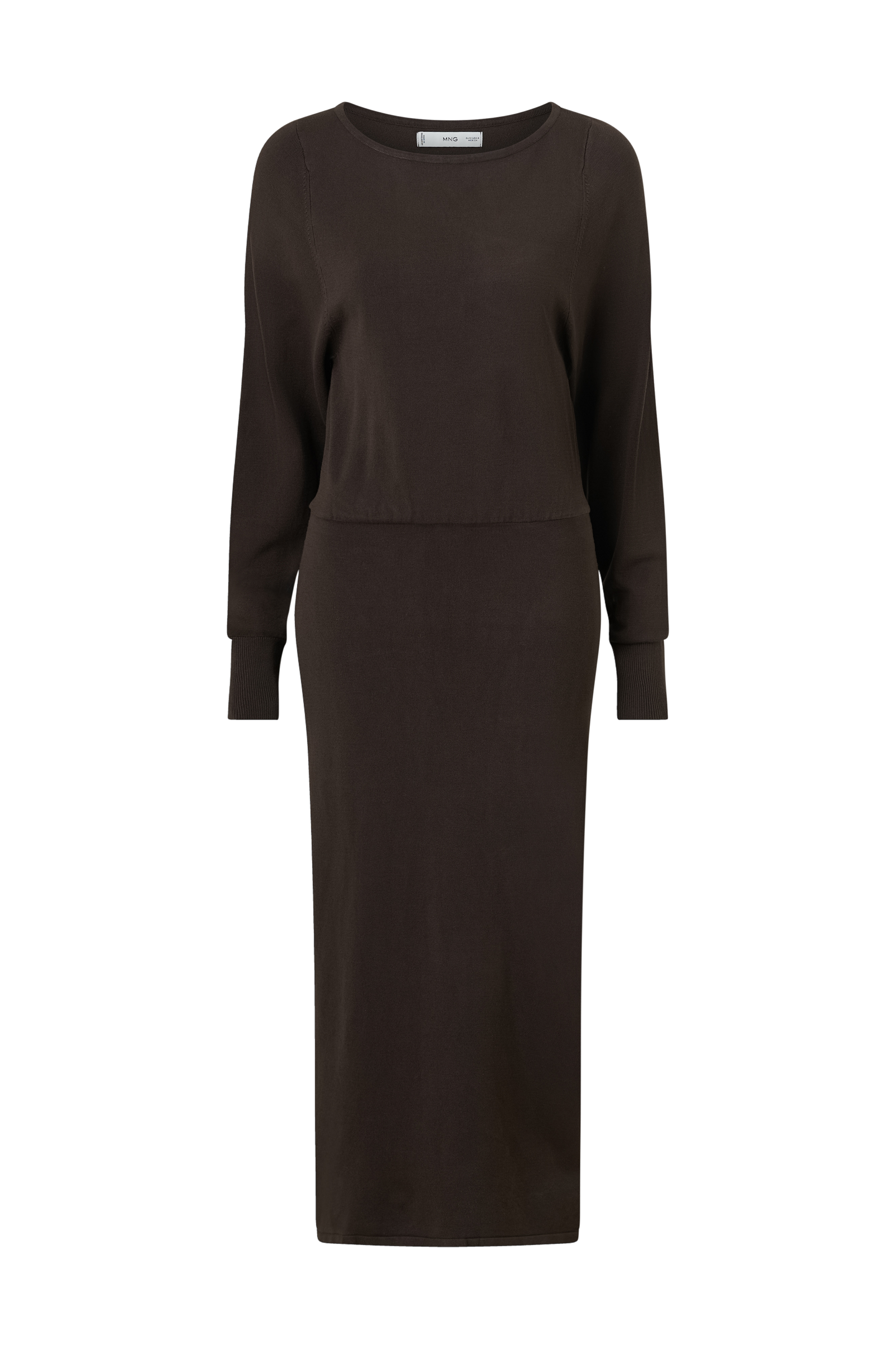 • Finstickad maxiklänning med båthals• Långa ärmar med ribbmuddar i ärmsluten• Elastisk avskärning i midjan• Hög slits nedtill i ena sidan• Längd: 133 cm i storlek S