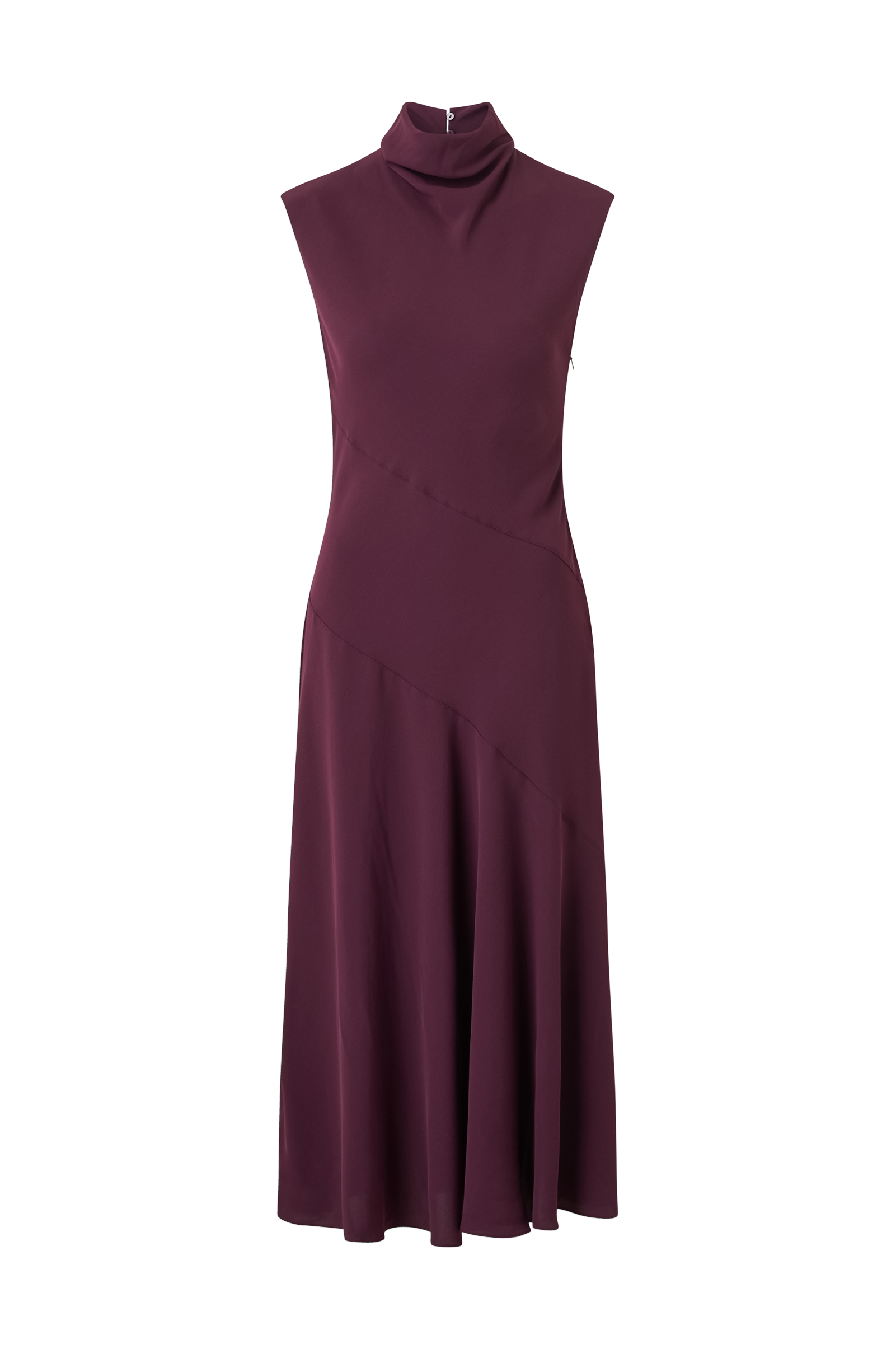 • Lång, ärmlös klänning• Hög, draperad krage• Nyckelhålsöppning med knappar i nacken• Textilfoder upptill• Dold dragkedja i ena sidan• Utsvängd nederdel• Längd: 130 cm i storlek S