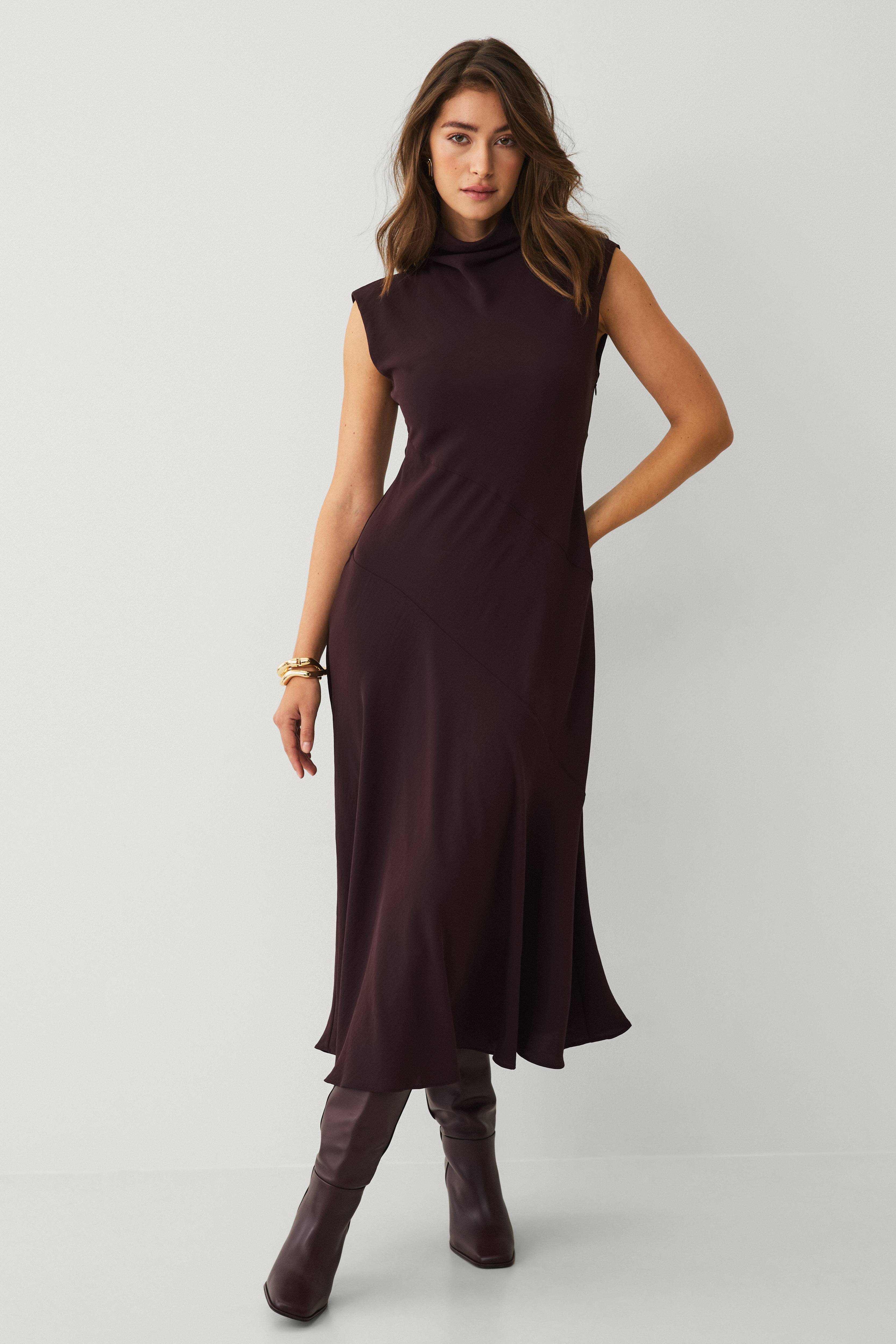 • Lång, ärmlös klänning• Halvhög hals• Sprund med knappar i nacken• Dold dragkedja i sidorna• Dekorativa sömmar i midjan• Lätt utsvängd kjol• Längd: 138 cm i storlek S