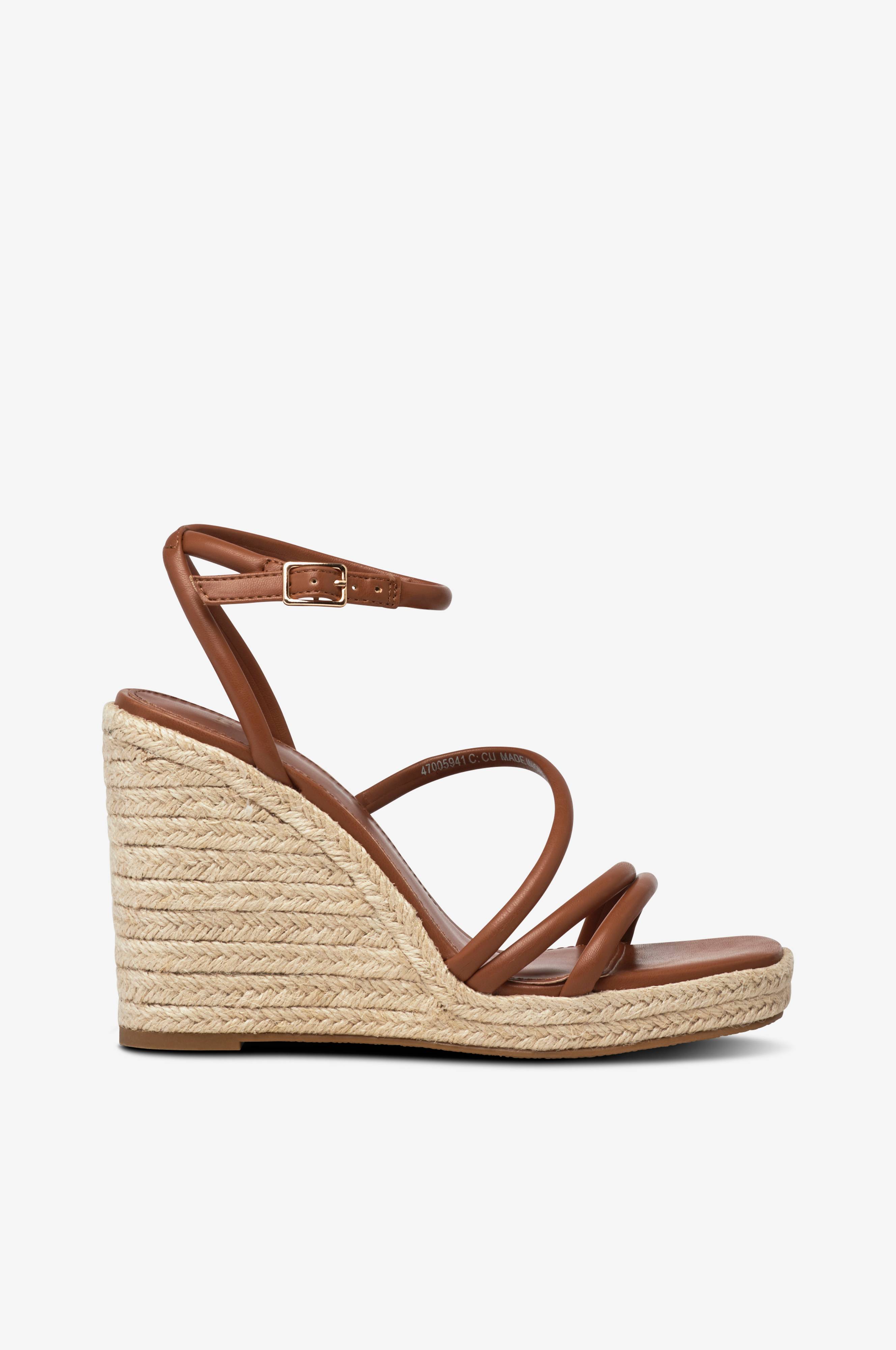 • Hög, repklädd kilklack• Smala remmar i skinnimitation• Litet spänne vid ankeln• Klackhöjd: 11 cm