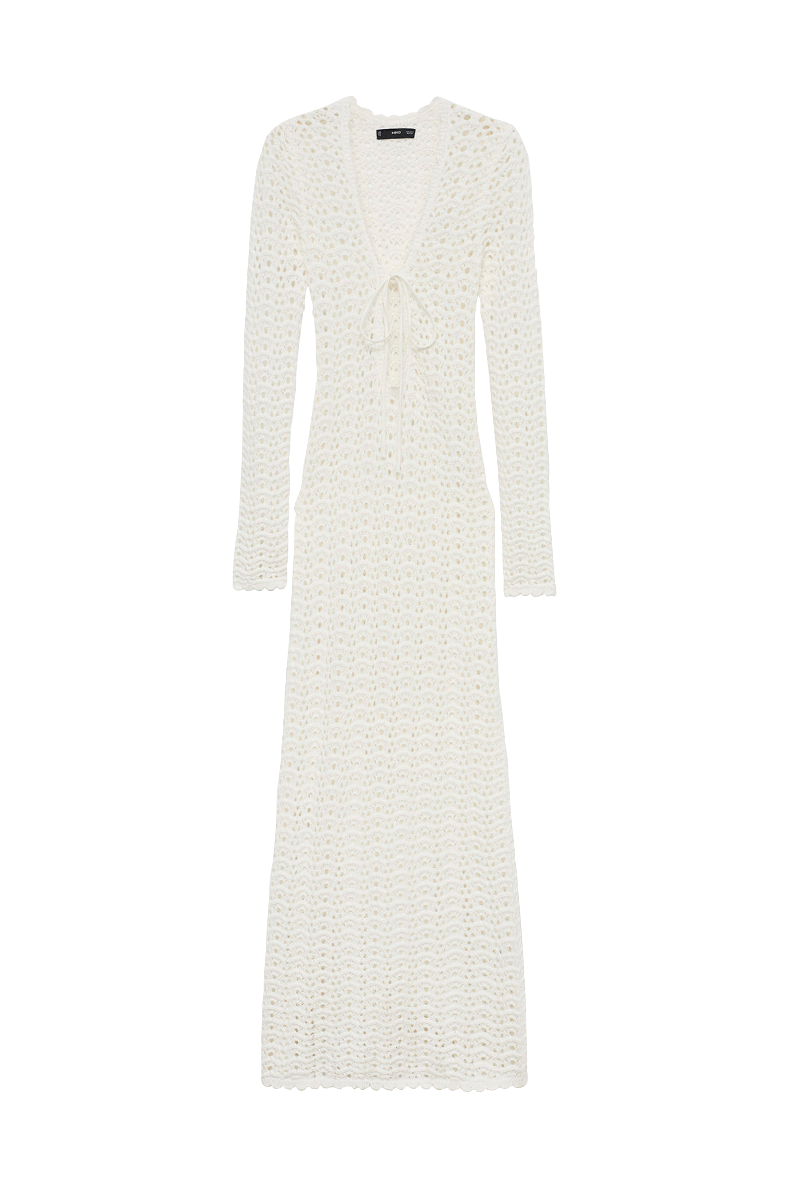 • Lång, transparent, virkad modell• Djup u-ringning med smala knytband fram• Extra lång ärm• Längd: 150 cm i storlek M