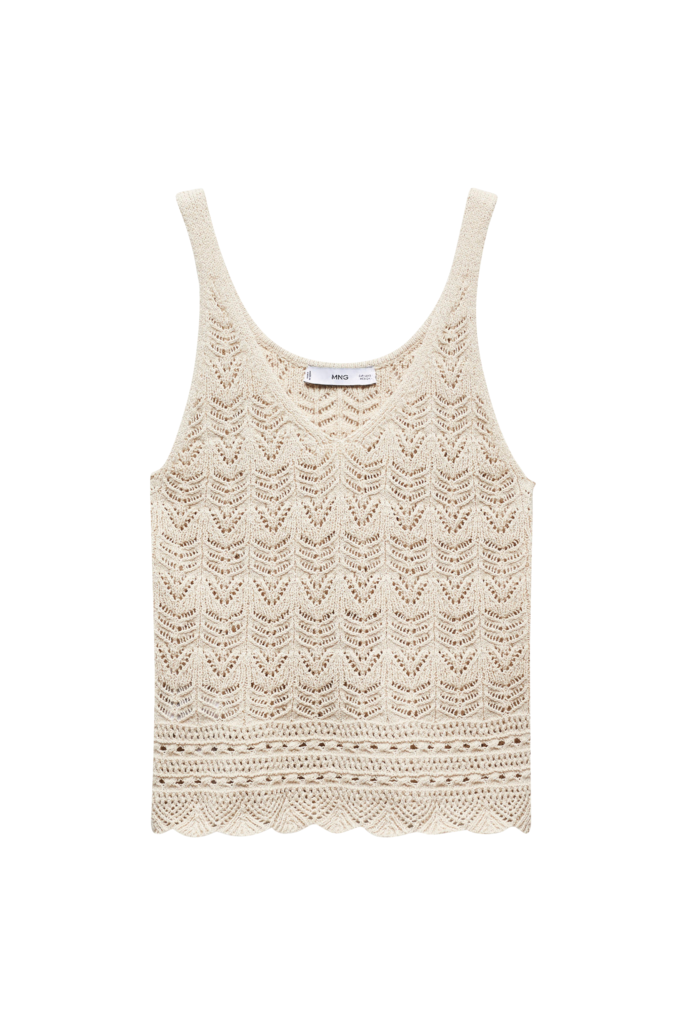 • Ärmlös, mönsterstickad modell• V-ringad hals• Vågig nederkant