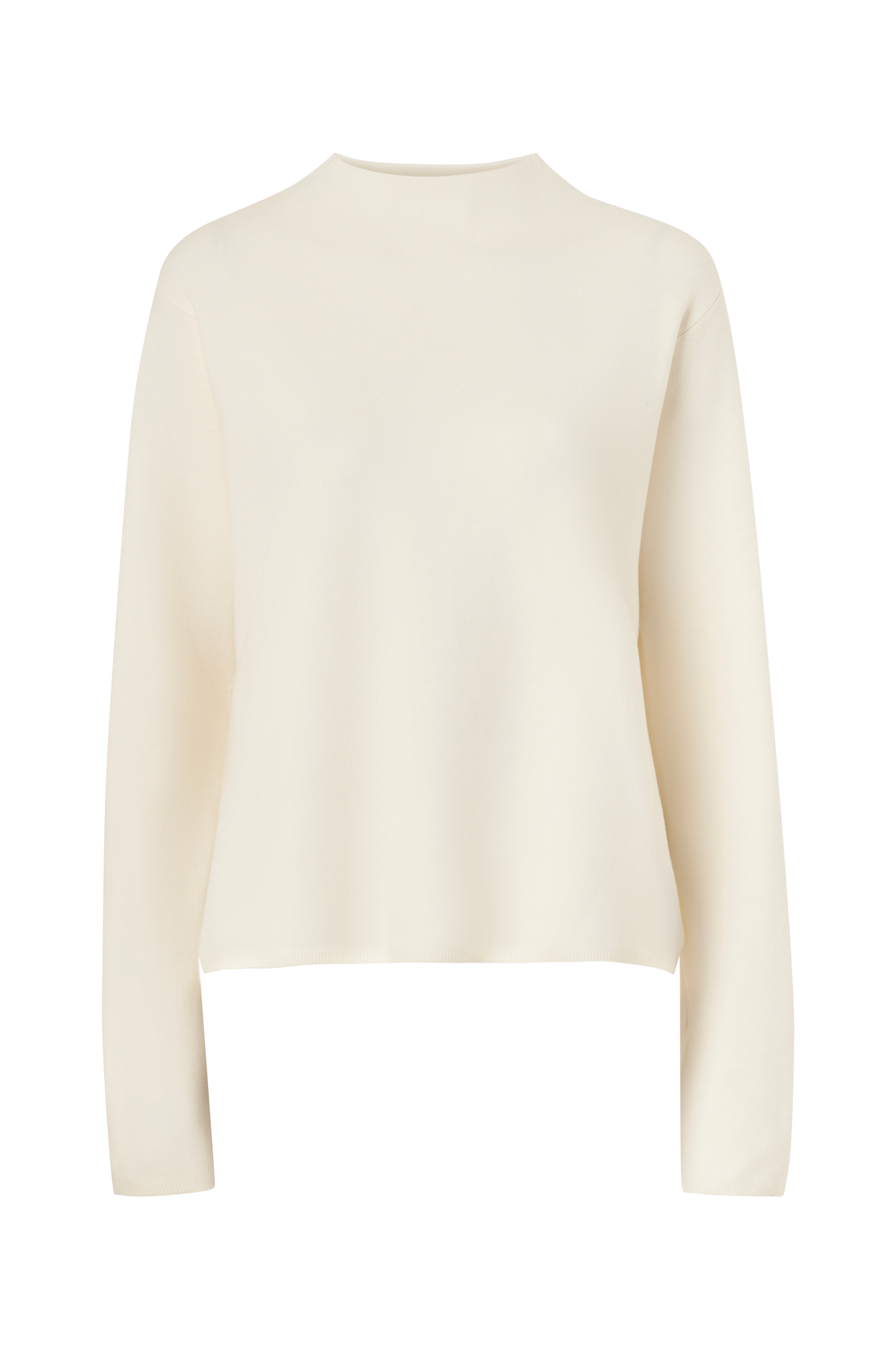 • Finstickad tröja• Hög, rund halsringning• Långa ärmar