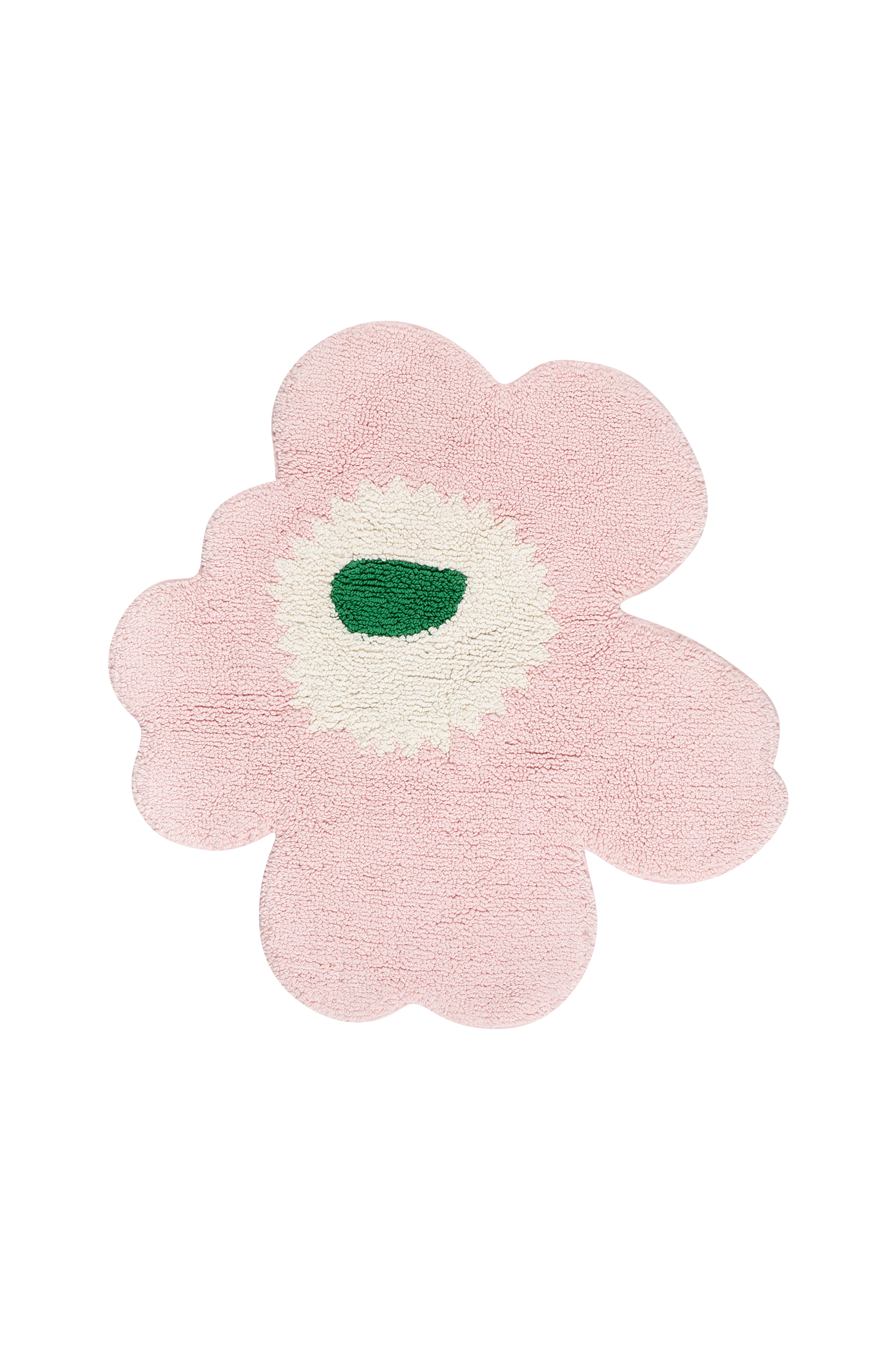 Den blomformade tuftade badmattan Unikko är tillverkad av ekologisk bomull. Den mjuka tuftade ytan och den handskurna formen ger varje badmatta ett unikt utseende, så små skillnader mellan produkterna kan förekomma. Badmattan har en halkfri baksida. Unikko Marimekko, som symboliserar kreativitet, föddes i en tid då knappt några blommönster ingick i Marimekkos kollektioner. Maija Isola var dock fascinerad av temat blommor och bestämde sig för att skapa en hel serie med nya blommönster.