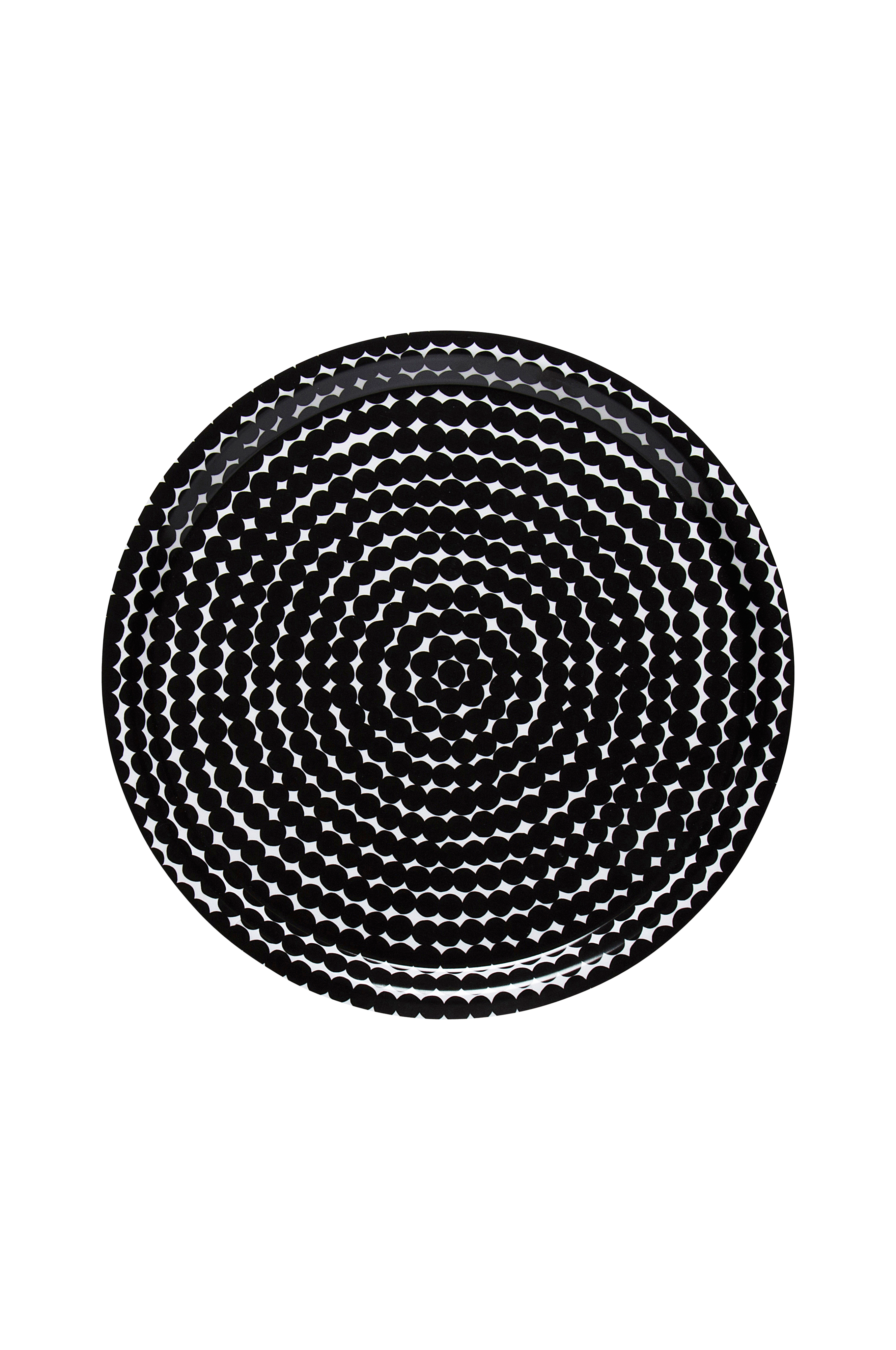 Rund bricka med mönstret Räsymatto i laminerad plywood av björk. Brickan är 31 cm i diameter. Handdisk rekommenderas.