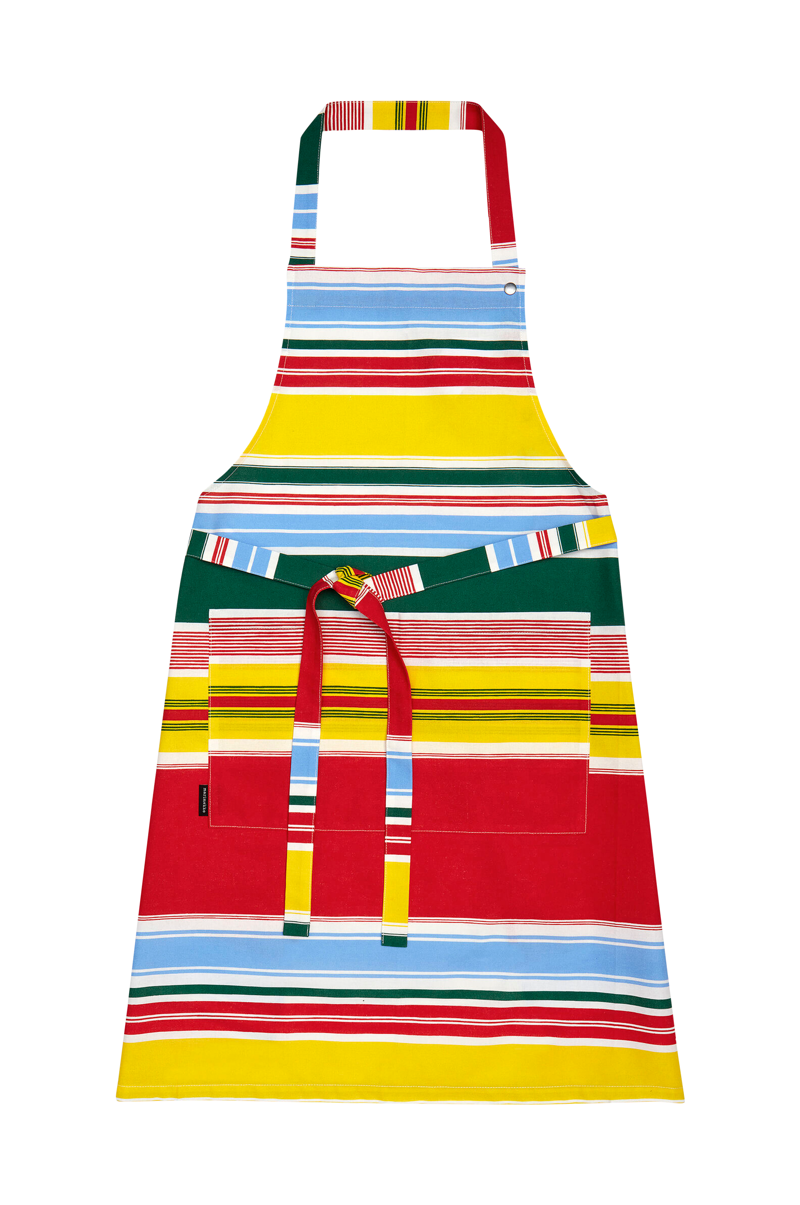 Ett bomullsförkläde i 100% bomull och har en ficka framtill. Förklädet har en justerbar halsrem och band i midjan som kan knytas ihop baktill. Paraati (parad) är ett fräscht, randigt mönster av Fujiwo Ishimoto som skildrar glädjen att leva med omväxlande ränder av olika tjocklek och fyra olika färger.