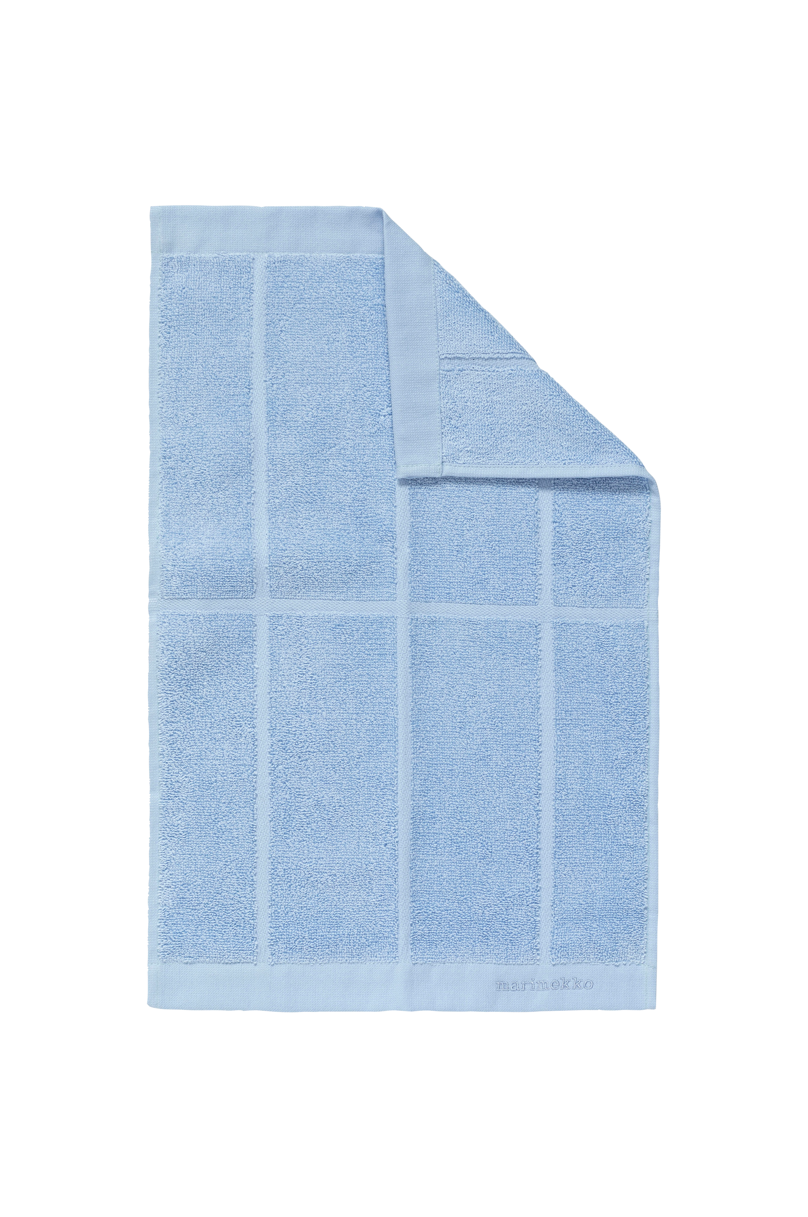 Gästhandduken med mönstret Tiiliskivi är tillverkad av ekologisk bomullsfrotté. Mönstret Tiiliskivi (tegel) designades av Marimekkos grundare Armi Ratia. Mönstret återspeglar hennes tro på den enkla skönheten i vardagen.