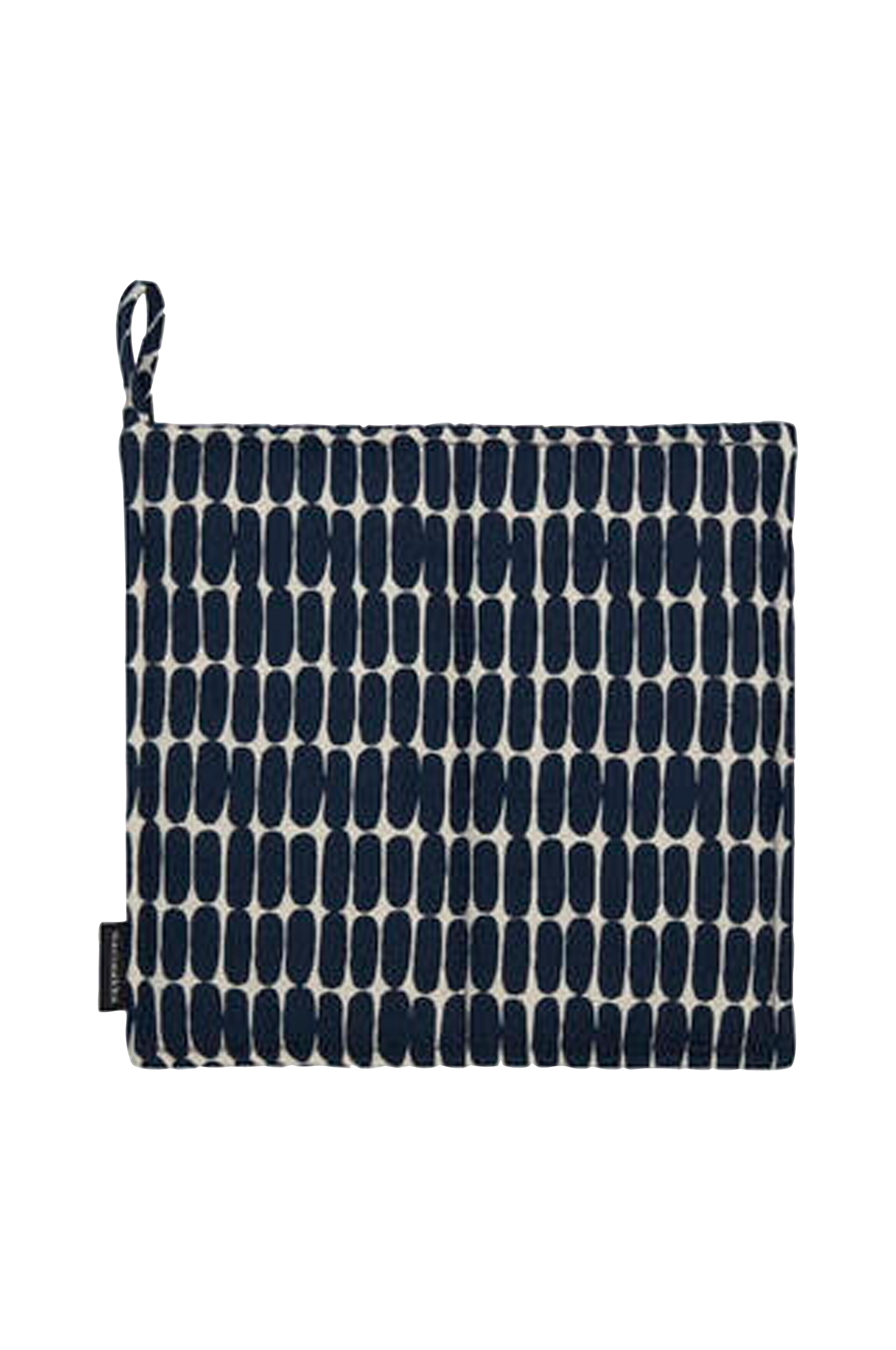Grytlapp Alku är gjord av en oblekt bomulls- och linneblandning, som är tryckt i Helsingfors. Den har en vadderad fyllning och en hängögla.Denna produkt innehåller 46 % återvunnen bomull och 21 % återvunnet linne.De bönliknande formerna i Maija Louekaris Alku (början ) design representerar frön som växer till magnifika, kraftfulla blommor.