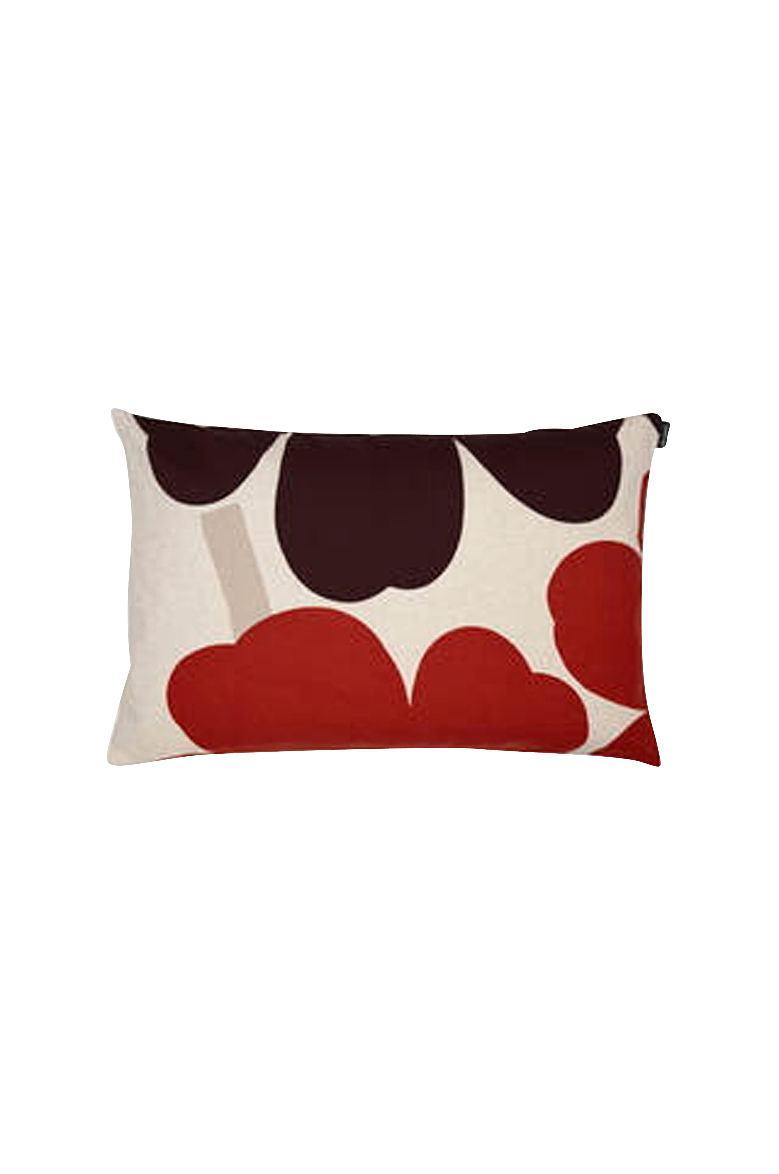 Kuddfodralet med mönster Unikko är tillverkat av en oblekt bomulls- och linneblandning, som är tryckt i Helsingfors. Fodralet har en dold dragkedja på ena sidan. Denna produkt innehåller 46% återvunnen bomull och 21% återvunnet linne. Unikko, som symboliserar kreativitet, föddes i en tid då knappt några blommönster fanns med i Marimekkos kollektioner. Maija Isola var dock fascinerad av temat blommor och bestämde sig för att skapa en hel rad nya blommönster.
