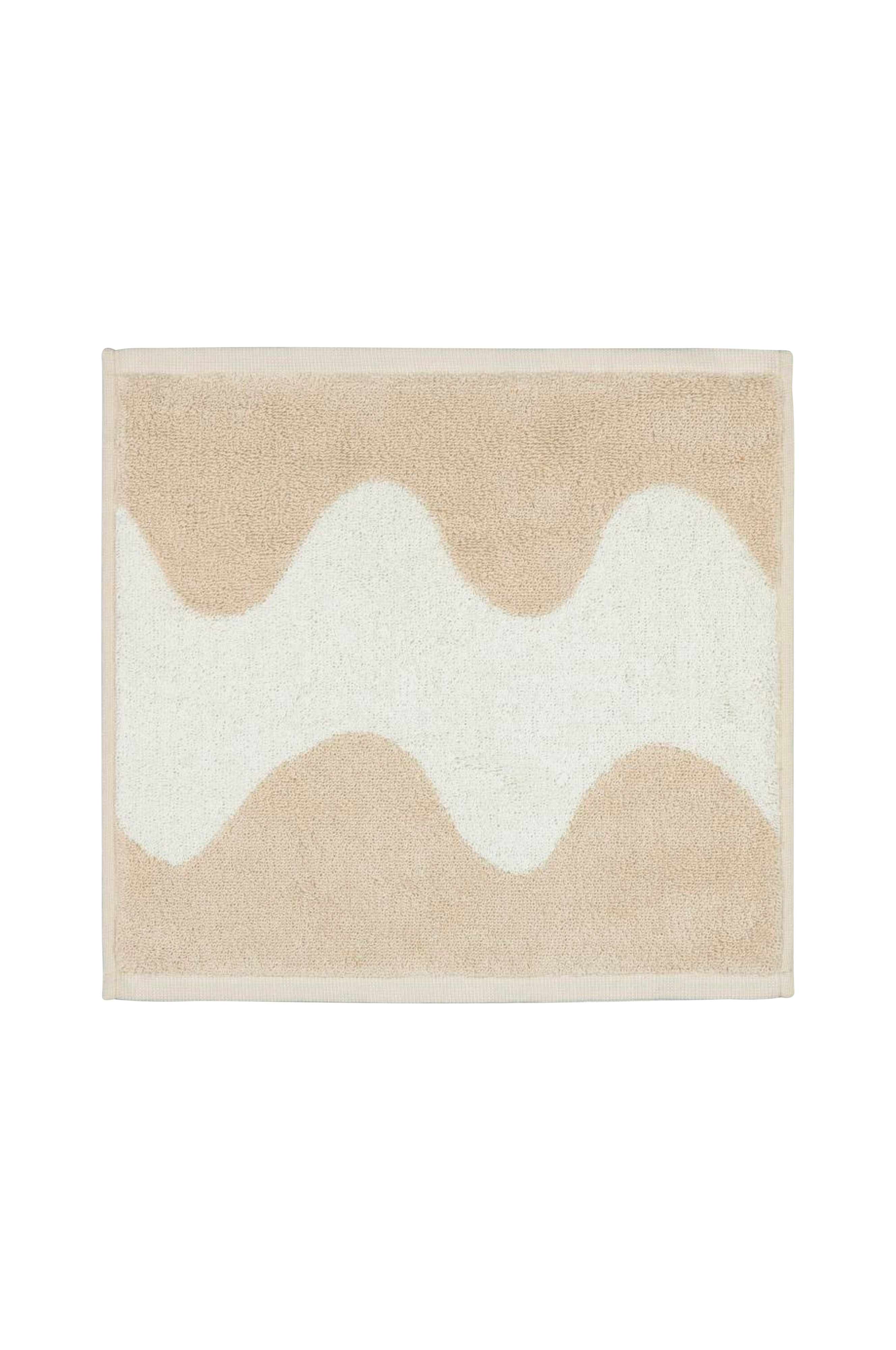 Liten handduk LOKKI i 100 % bomull. Idén till mönstret Lokki (måsen) kom till Maija Isola när hon tittade på ett fönster med en gardin dragen över den. Solen sken och gardinens breda veck formade vågiga skuggor på tyget. Maija hade en plötslig inspiration: om ett tyg är tryckt med vågor, verkar till och med en liten bit av sådant tyg rikligt, rikt vikta.