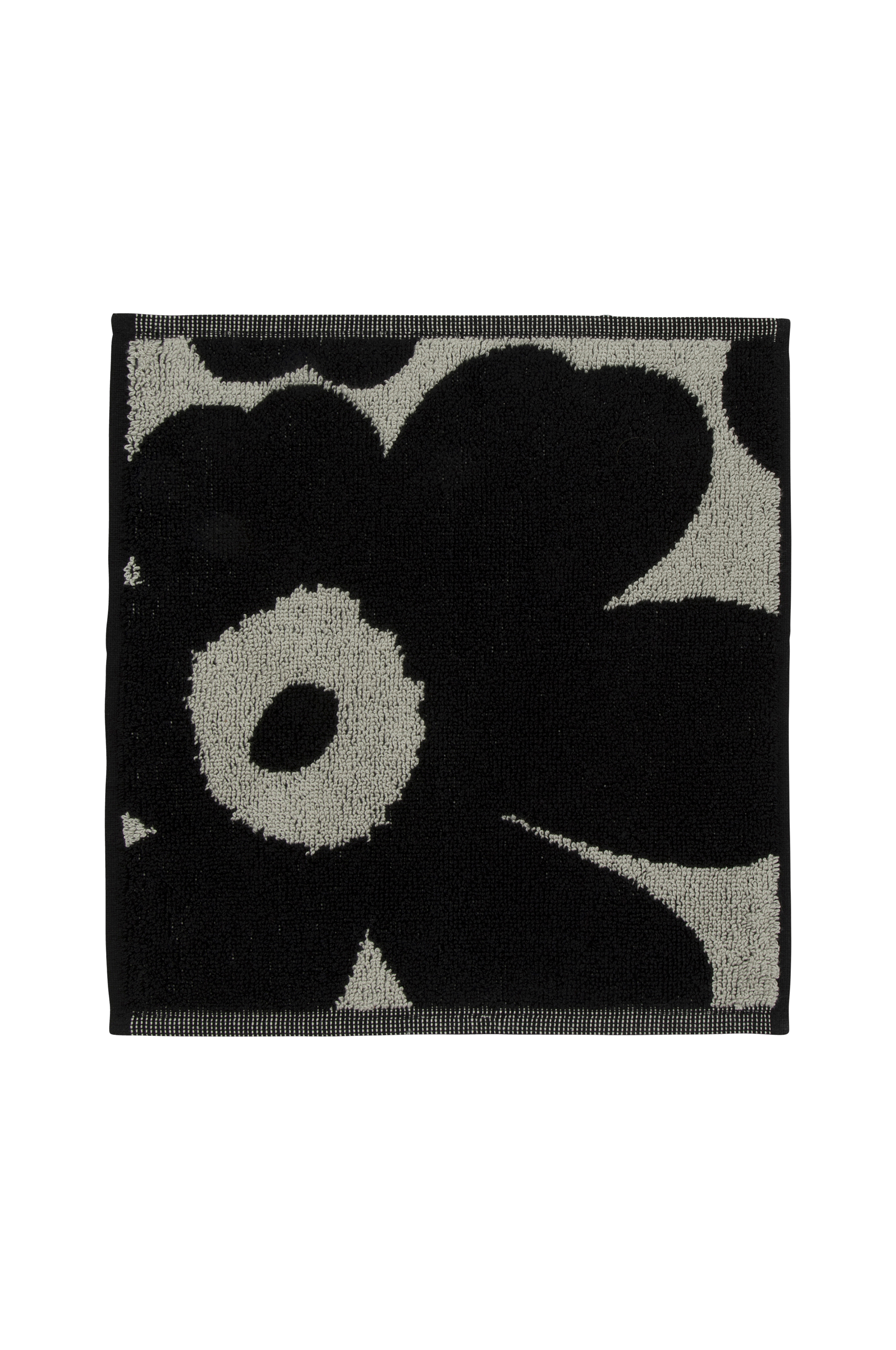 Handduk i bomullsfrotté med mönstret Unikko. Marimekkos berömda vallmomönster Unikko skapades 1964, under en period då abstrakta mönster genomsyrande kollektionerna. Formgivaren Maija Isola ville skapa något intressant i detta organiska tema och designade en mängd olika blommönster. Idag symboliserar det ikoniska blommotivet kreativitet.