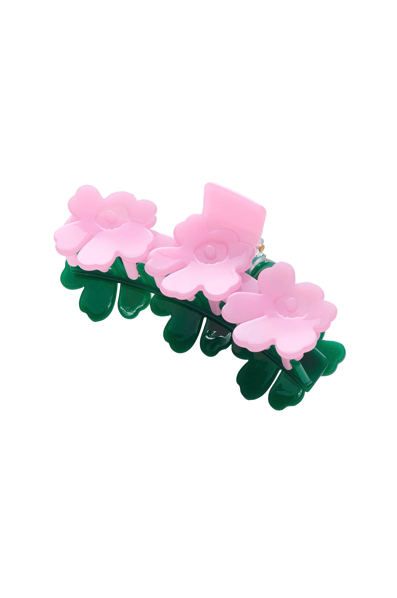 På two-tone Mini Unikko hair clip finns tre små Unikko blommor.