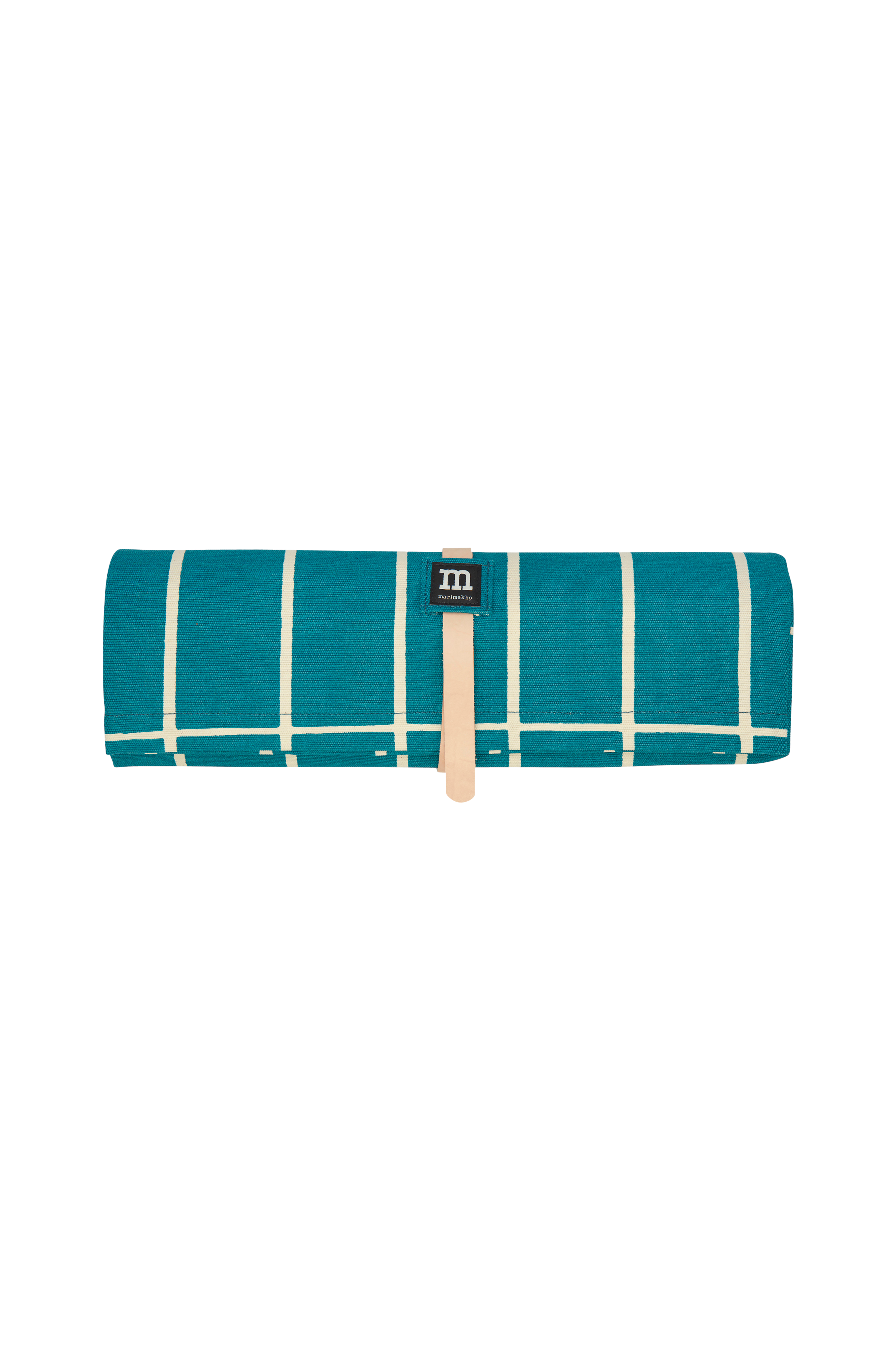 Denna picknickfilt är tillverkad av oblekt, kraftigt bomullsmaterial med fläckavvisande behandling, och har mönstret Tiiliskivi (tegel) i kastanjebrunt och offwhite. Filten kan rullas ihop och hålls samman med en avtagbar läderrem. Mönstret Tiiliskivi (tegel) ritades av Marimekkos grundare Armi Ratia. Mönstret speglar hennes tro på vardagens enkla skönhet.
