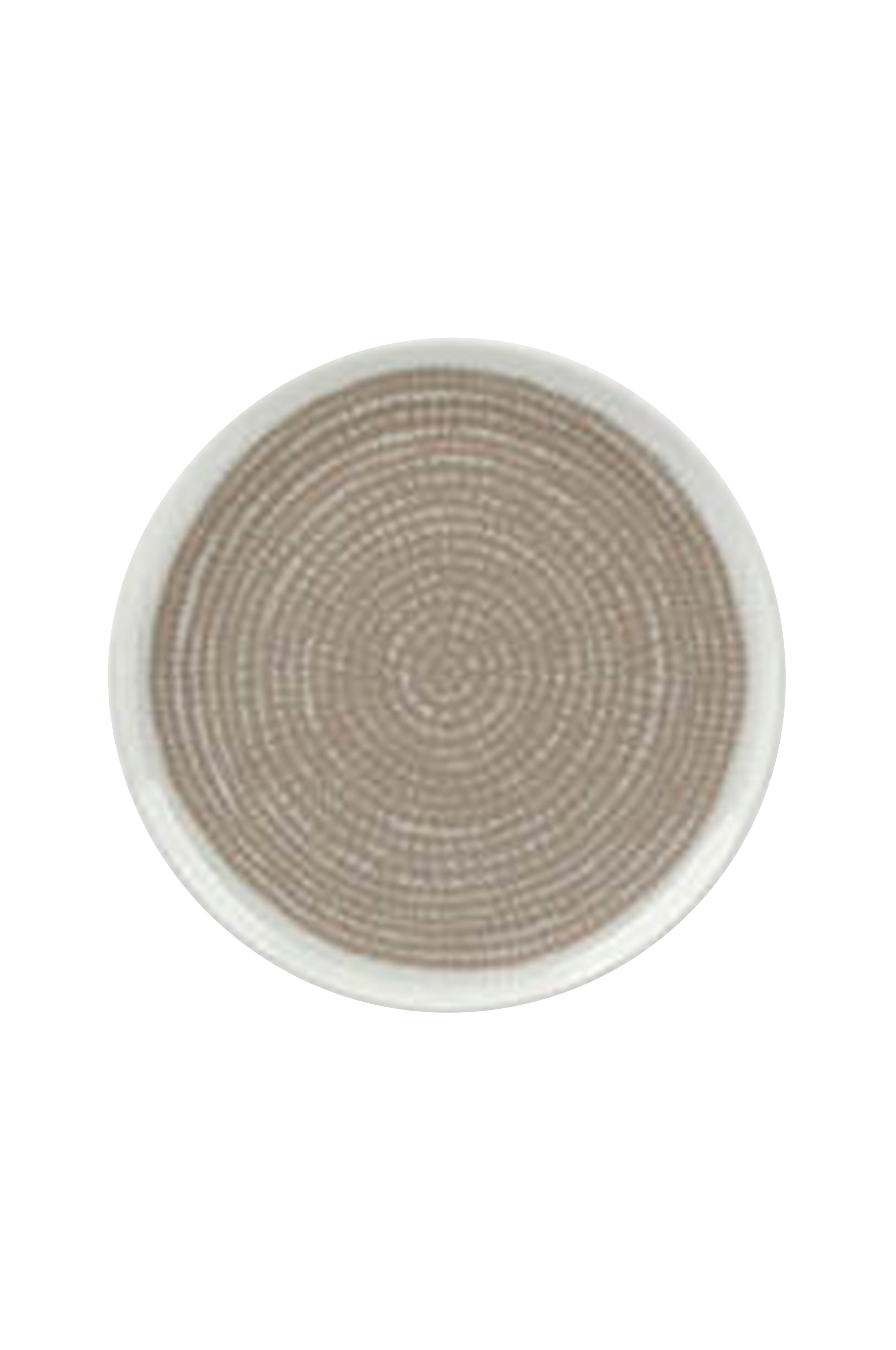 Liten tallrik från siirtolapuutarha tål diskmaskin, ugn, mikrovågsugn och fryssäker vitt stengods. Mönstret Räsymatto (trasmatta), inspirerat av koloniträdgårdsskötsel, är kopplat till aktuella teman som hållbart boende och glädjen att arbeta med händerna. Koloniter, med sina blomster- och grönsaksrabatter, representerar urban natur när den är som bäst, och en trasmatta på golvet i en kolonistuga berättar en färgstark historia för sig.
