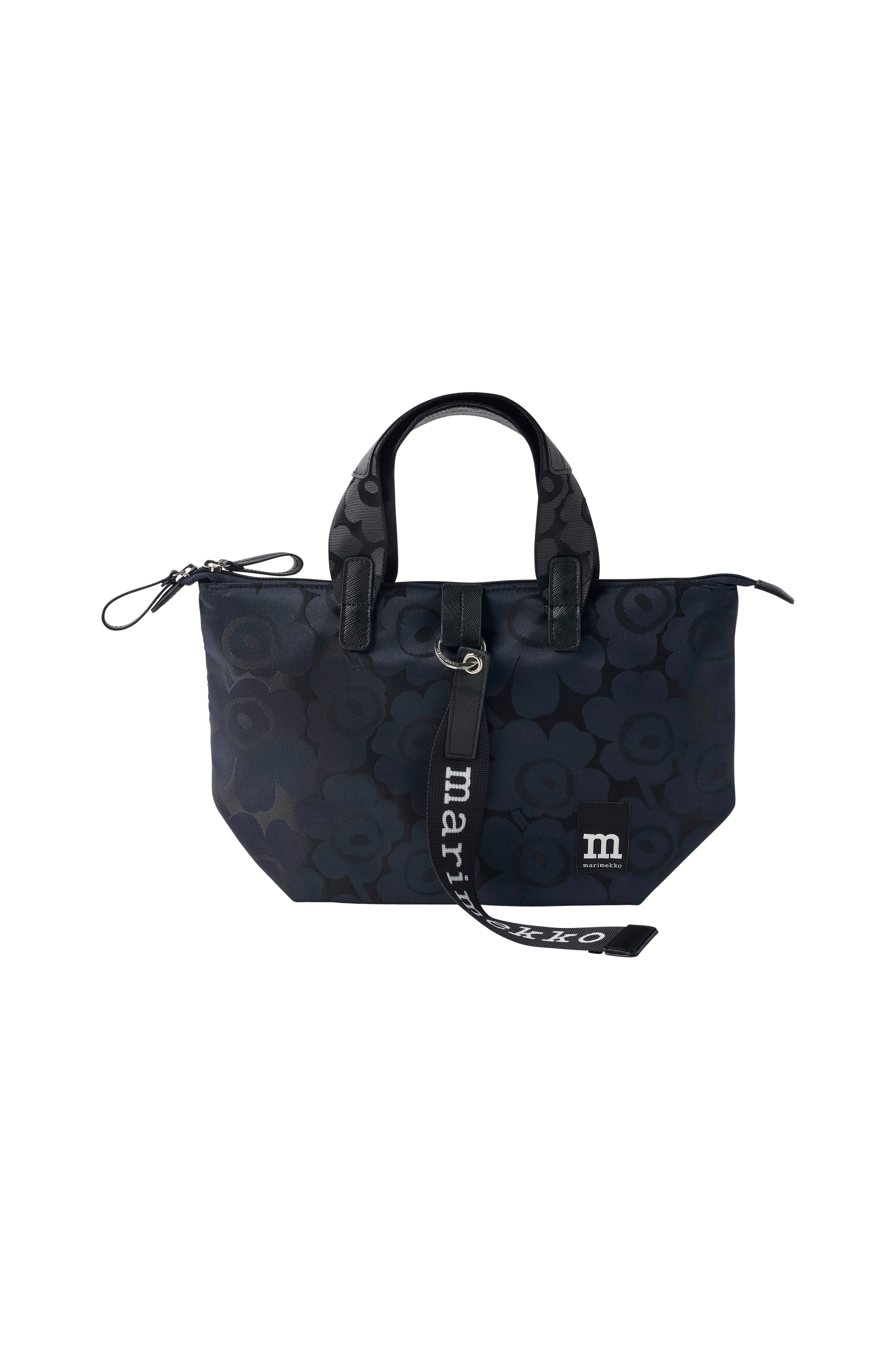 23 x 22 x 14Akselväskan Tote S har det jacquardstickade Unikko -mönstret. Väskan har dragkedjestängning, handtag och en justerbar axelrem. Insidan är fodrad och har ett insticksfack. På framsidan finns Marimekko-logotypen och Marimekko-nyckelremmen som fästs med en D-ring.