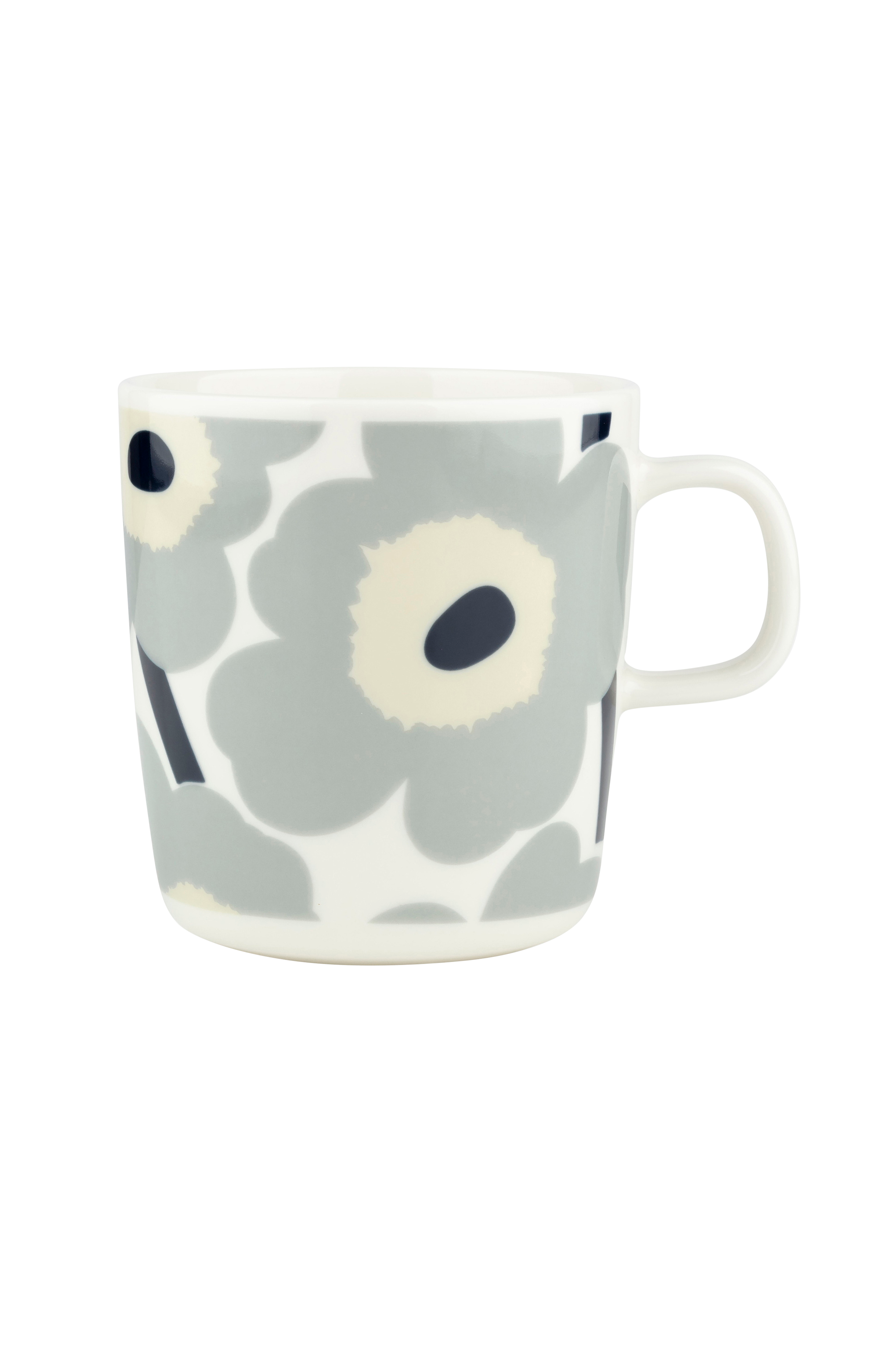 Den stora Oiva-muggen är tillverkad av vitt stengods som tål maskindisk, ugn, mikrovågsugn och frys. Vänligen ta bort klistermärket från produktens undersida före användning. Klistermärket innehåller en liten mängd metall. Unikko skapades av Maija Isola 1964 och har sedan dess blivit en internationell ikon inom grafisk design. Marimekkos grundare, Armi Ratia, ansåg att det inte var möjligt att på ett trovärdigt sätt fånga den sanna essensen av riktiga blommor i tryck, och därför uteslöts blommönster tidigare från Marimekkos kollektioner. Maija Isola designade därför Unikko som en abstraktion av en blomma snarare än en fotorealistisk återgivning. Idag är Unikko en kraftfull symbol för glädje och kreativitet, sömlöst integrerad i Marimekkos designidentitet.