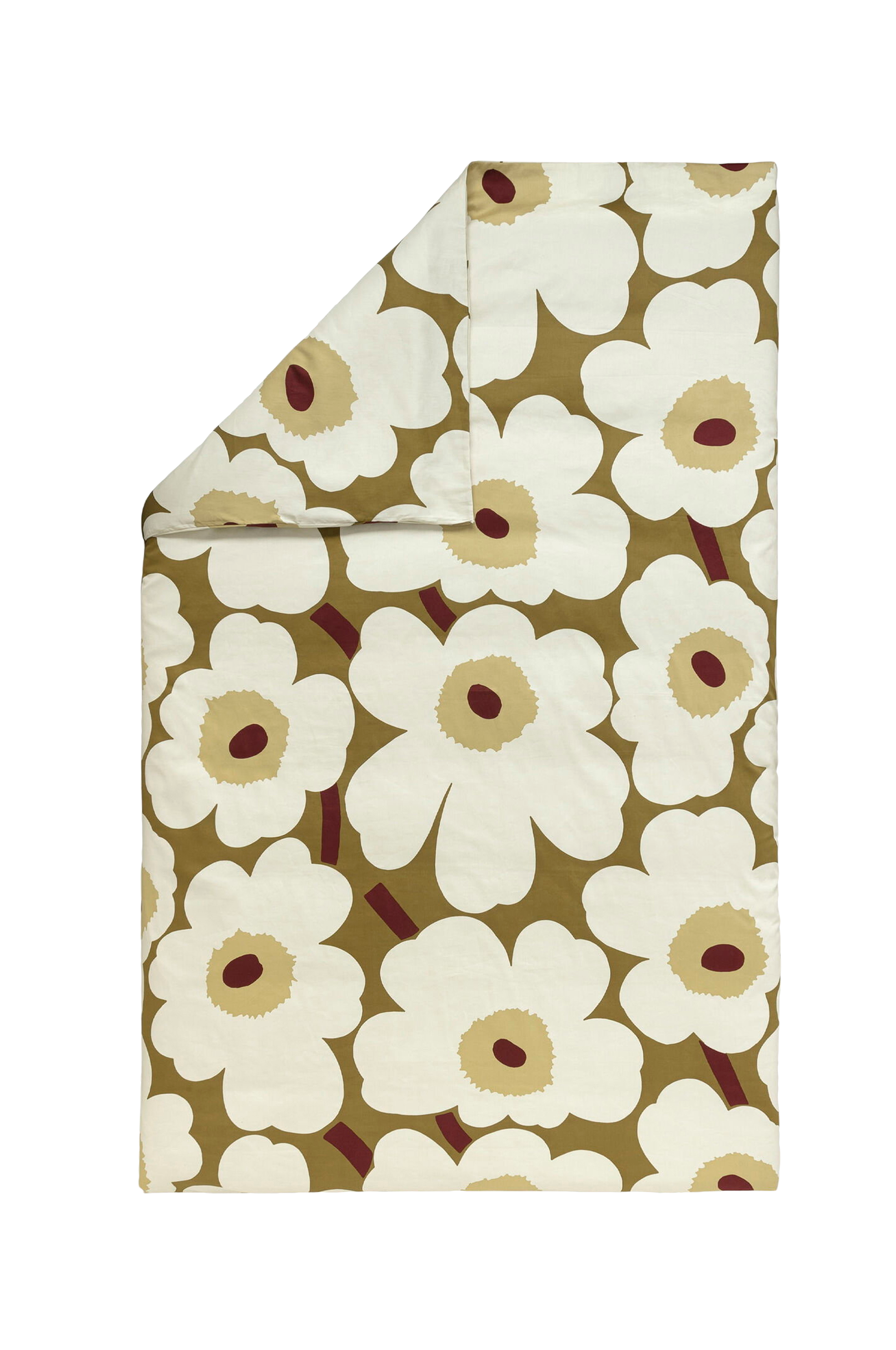 Det mönstrade Unikko påslakanet för singel har handöppningar i de övre hörnen som gör det lättare att byta påslakan. Påslakanet är tillverkat av 100% ekologisk bomull sateen med en 220 Tc. Produkten är förpackad i en påse tillverkad av samma material. UnikkoMarimekko, som symboliserar kreativitet, föddes i en tid då knappt några blommönster ingick i Marimekkos kollektioner. Maija Isola var dock fascinerad av temat blommor och bestämde sig för att skapa en hel serie med nya blommönster.