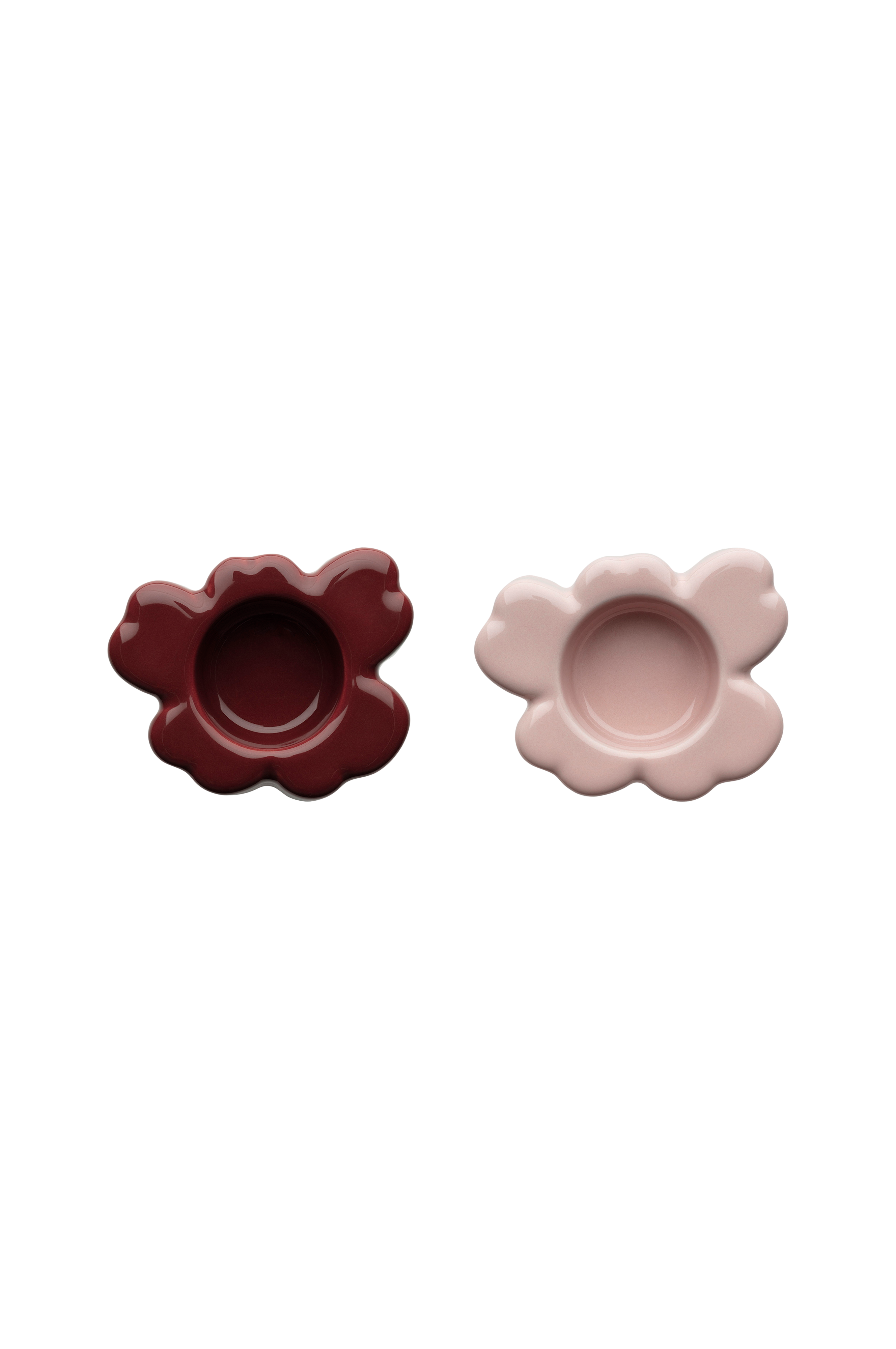 Detta set innehåller två Unikko blomformade värmeljushållare av glas. Vi rekommenderar att du diskar produkterna för hand. Denna uppsättning firar 60-årsjubileet för mönstret Unikko och varje produkt har jubileumsstämpeln på undersidan. Setet är förpackat i Unikko 60th anniversary box. Unikko skapades av Maija Isola 1964 och har sedan dess blivit en internationell ikon för tryckt design. Marimekkos grundare, Armi Ratia, ansåg att det inte var möjligt att på ett trovärdigt sätt fånga den sanna essensen av riktiga blommor i tryck, vilket var anledningen till att blommönster tidigare uteslöts från Marimekkos kollektioner. Maija Isola designade därför Unikko som en abstraktion av en blomma snarare än en fotorealistisk återgivning. Idag är Unikko en kraftfull symbol för glädje och kreativitet, sömlöst integrerad i Marimekkos designidentitet. 10x3 cm