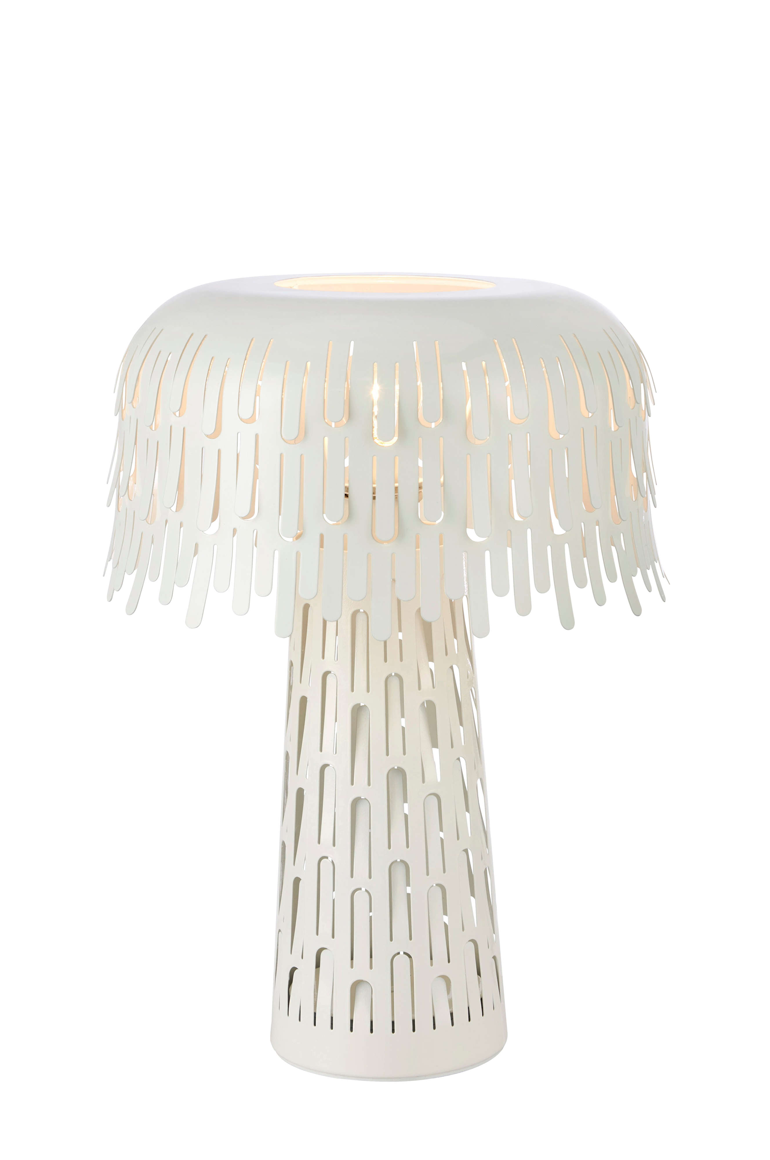 Verbera bordslampa från markslöjd. Skärm och bas i färgad metall med blank yta. Laserskurna detaljer ger ljusspridning och visuell struktur. 2m textilkabel med strömbrytare och väggkontakt. 1xe14, max 40w. Klass ii. ljuskälla ingår ej.