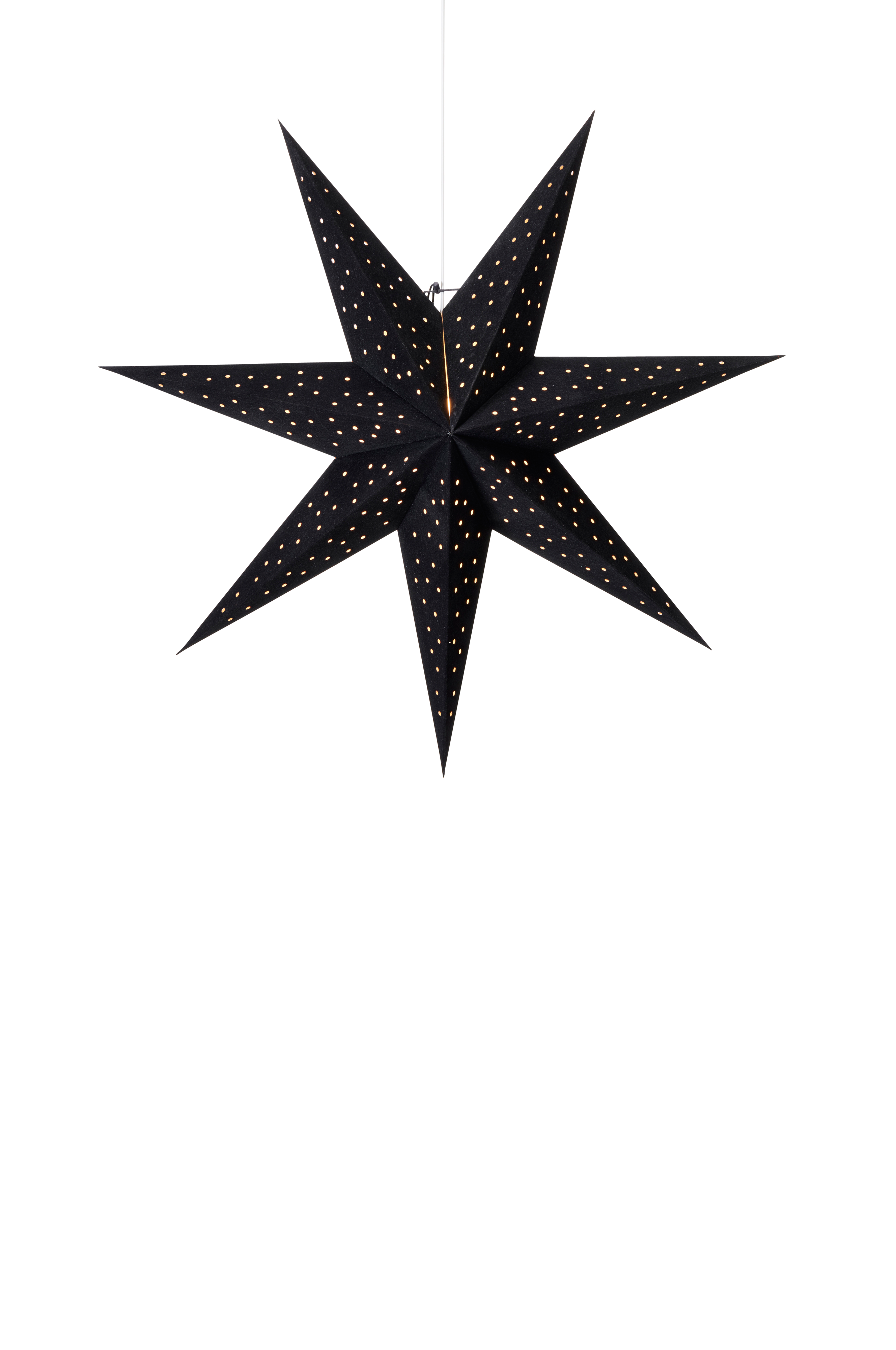 CLARA Hängande pappstjärna med 3,5 meter sladd och E14 sockel. 75 cm i diameter och djup 23 cm.