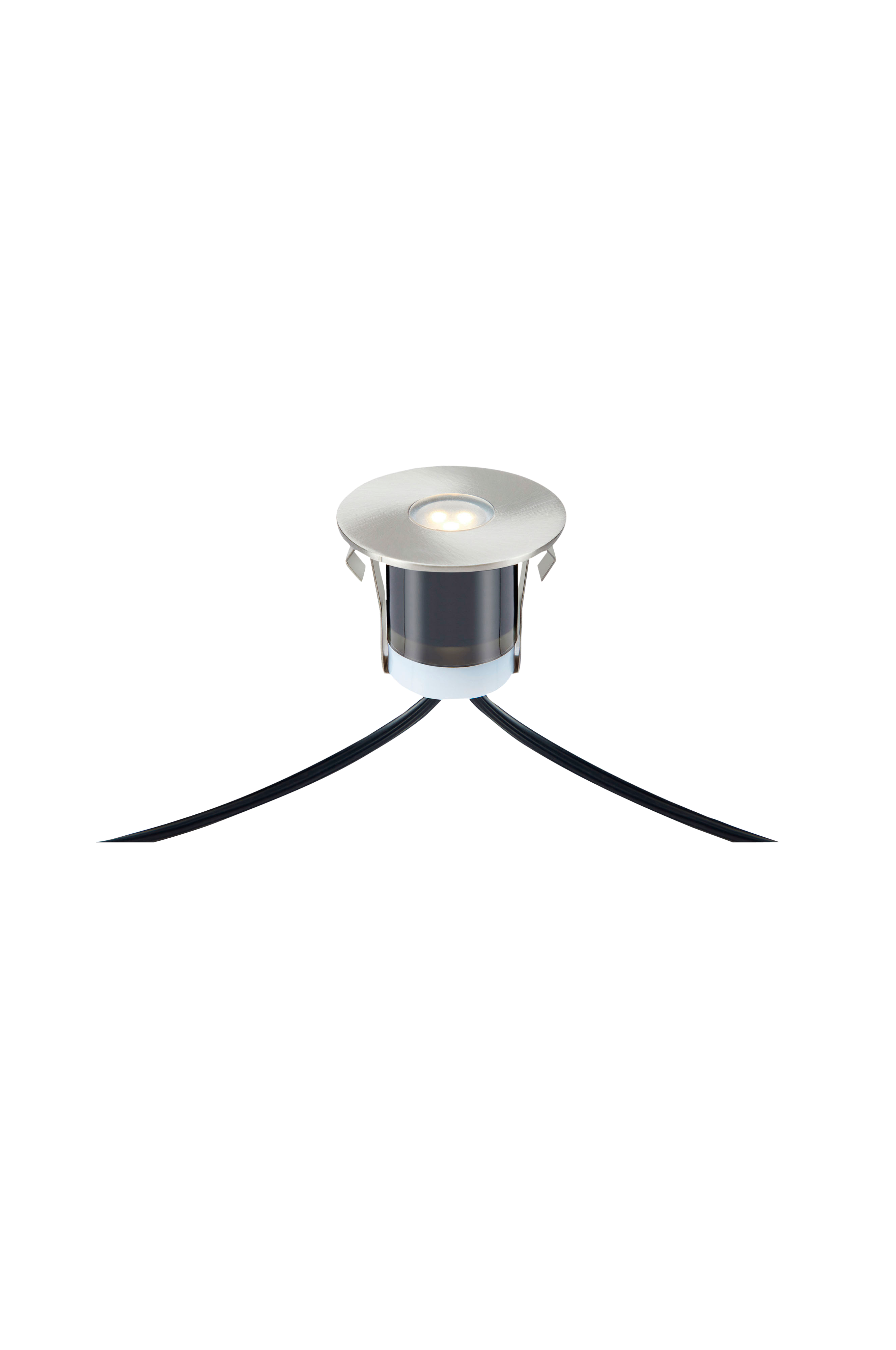 Garden 24 decklight från Markslöjd. Tre stycken decklights för exempelvis inbyggnad i trall. Godkänd för utomhusbruk. IP44. Diameter 5cm. Fast LED på 0,8W i varje decklight. Transformator säljs separat. Mått: 5 x 5 x 4 cm