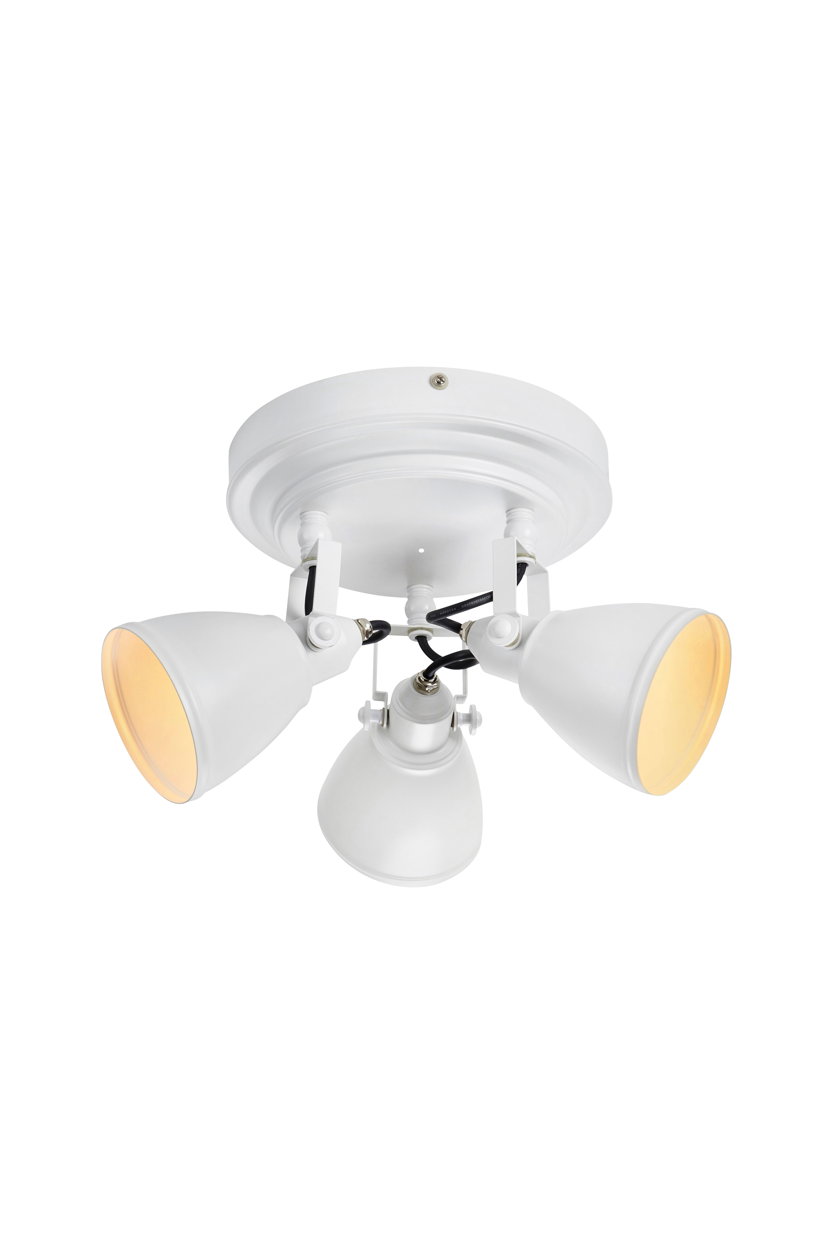 Fjällbacka taklampa i metall, från Markslöjd. Godkänd för badrum, IP44. Justerbara spottar. Upphäng med takbygel. Har 3 st lamphållare, sockel G9, Max 20W. Takkontakt och ljuskällor ingår ej. Finns att beställa separat. Taklampan är jordad.