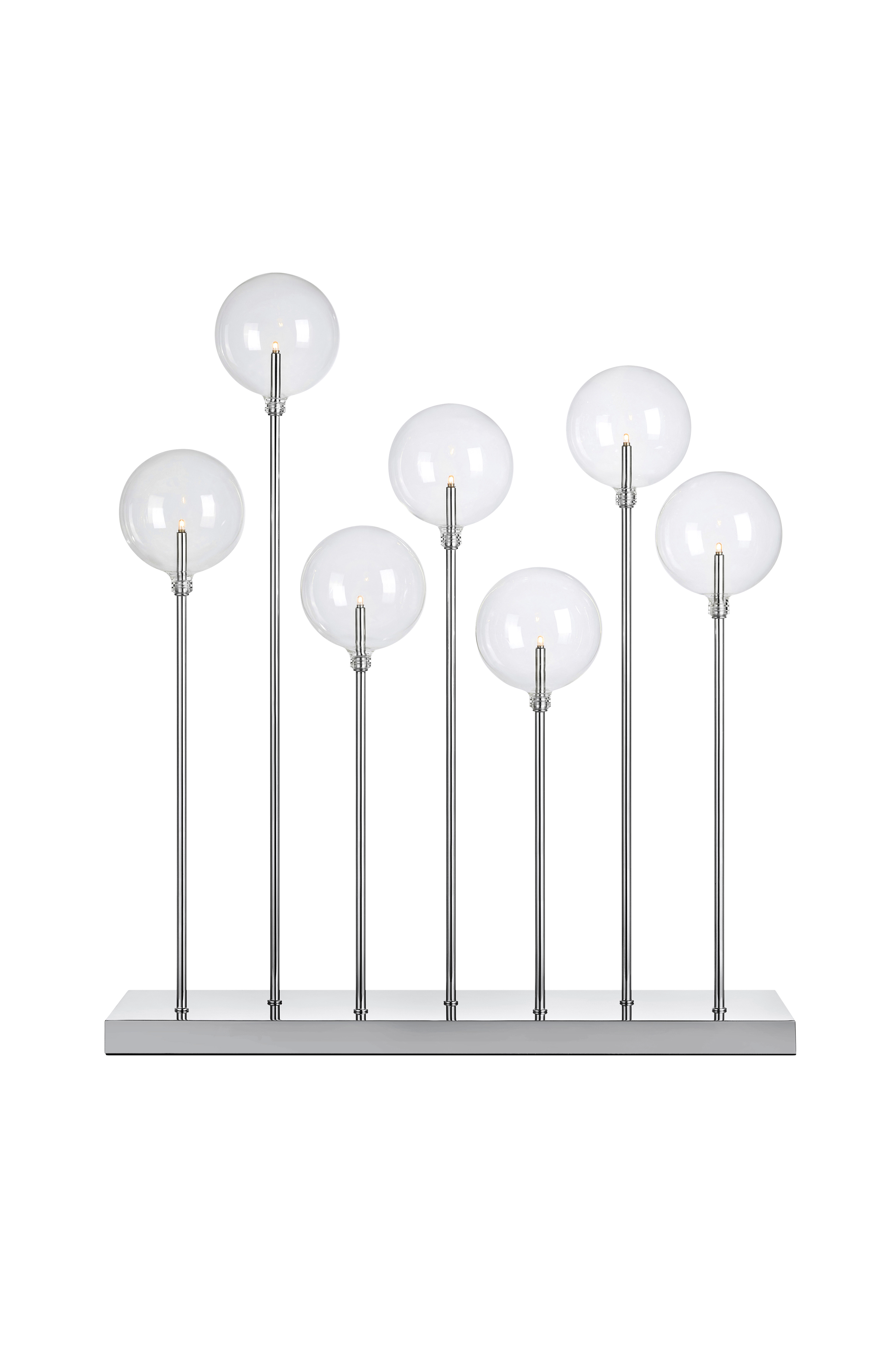 MÄSTER XL Ljusstake i metall med sju ljuspunkter och tillhörande glaskupor. 2 meter kabel, 12V och 5W glödlampor med E5 fattning. Höjd 58, bredd 50, djup 14 cm.