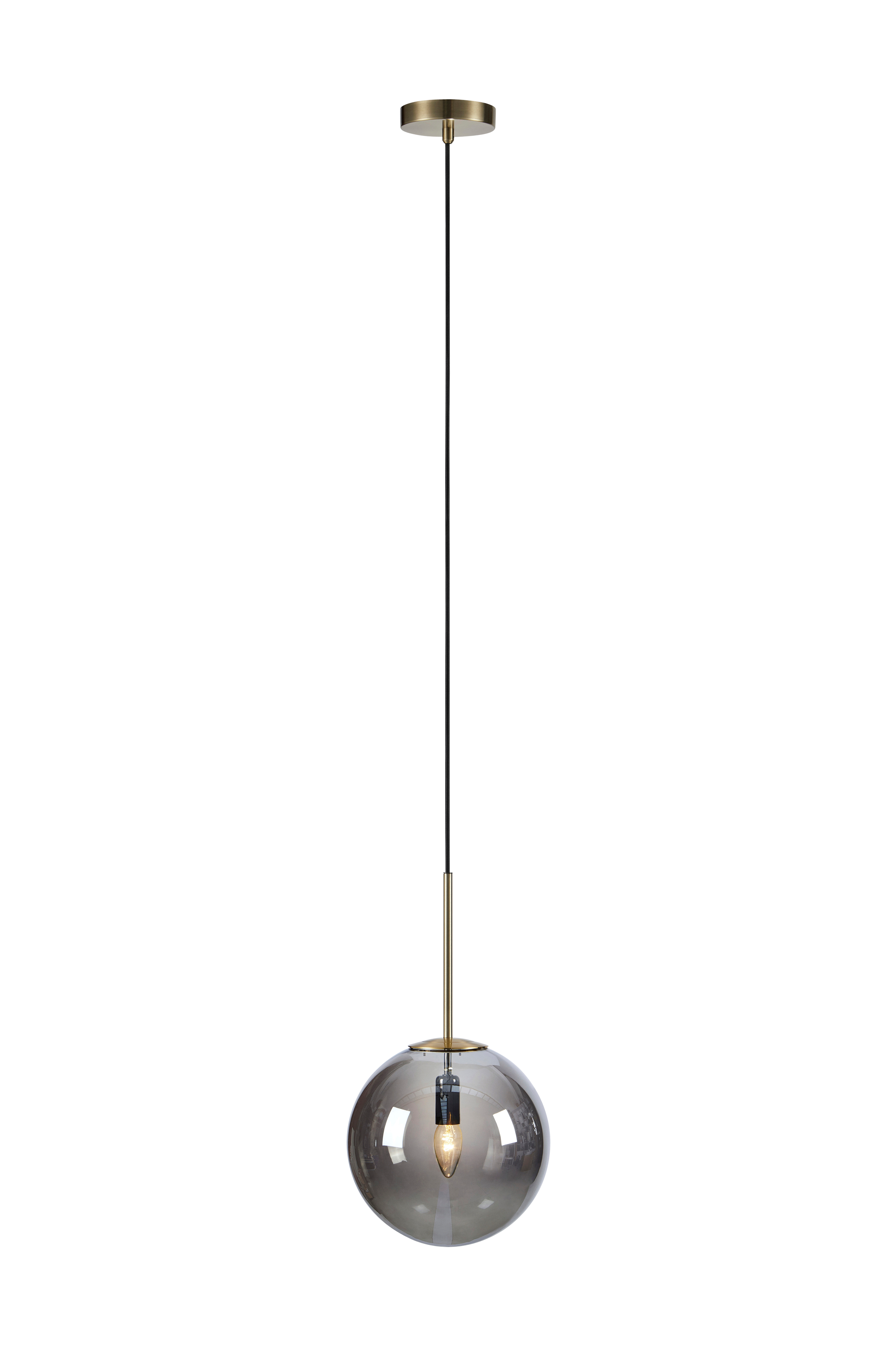Pendeln Dione från Markslöjd har en bas i metall och rund skärm i glas. Den har en textilkabel som är 1,5m och takbygel. E14 sockel och max 40W. Ljuskälla ingår ej. Bredd 25 cm, djup 25 cm och höjd 185 cm.