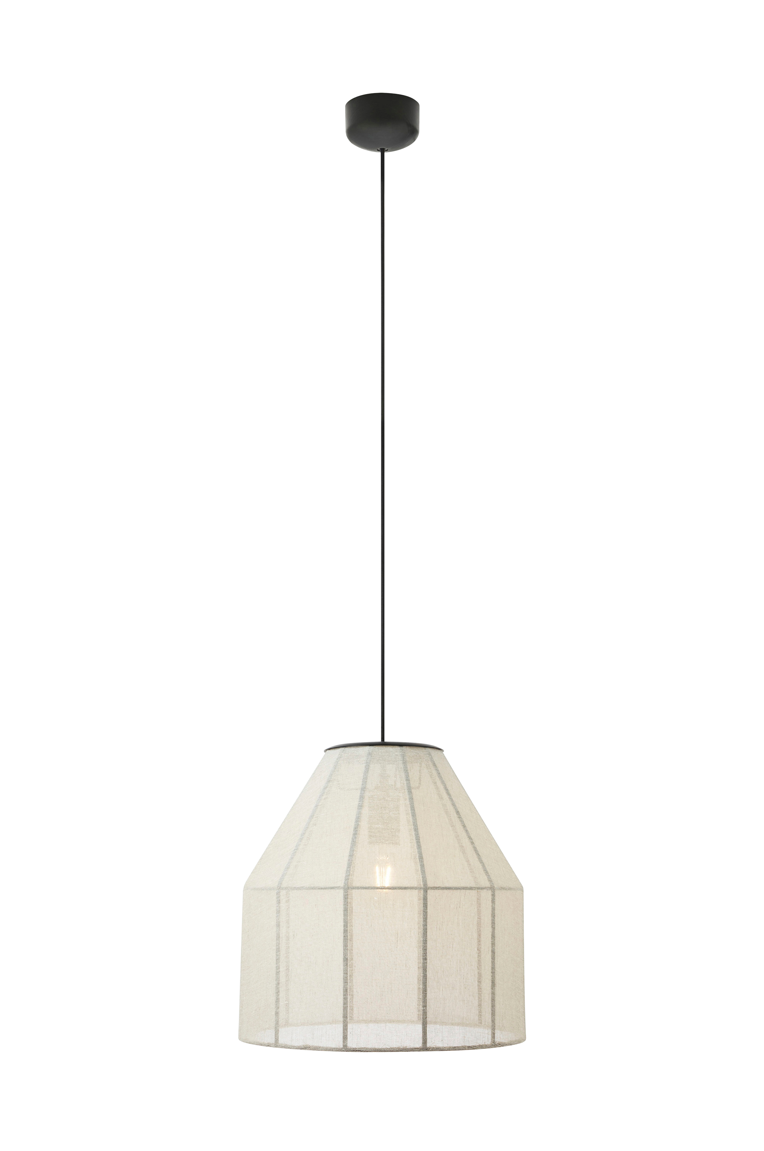 Aiko pendel från markslöjd. Skärm i linne med metallram. 1,5m textilkabel. Diameter 37cm. Monteras med takkrok. 1xe27, max 40w. Ljuskälla ingår ej.