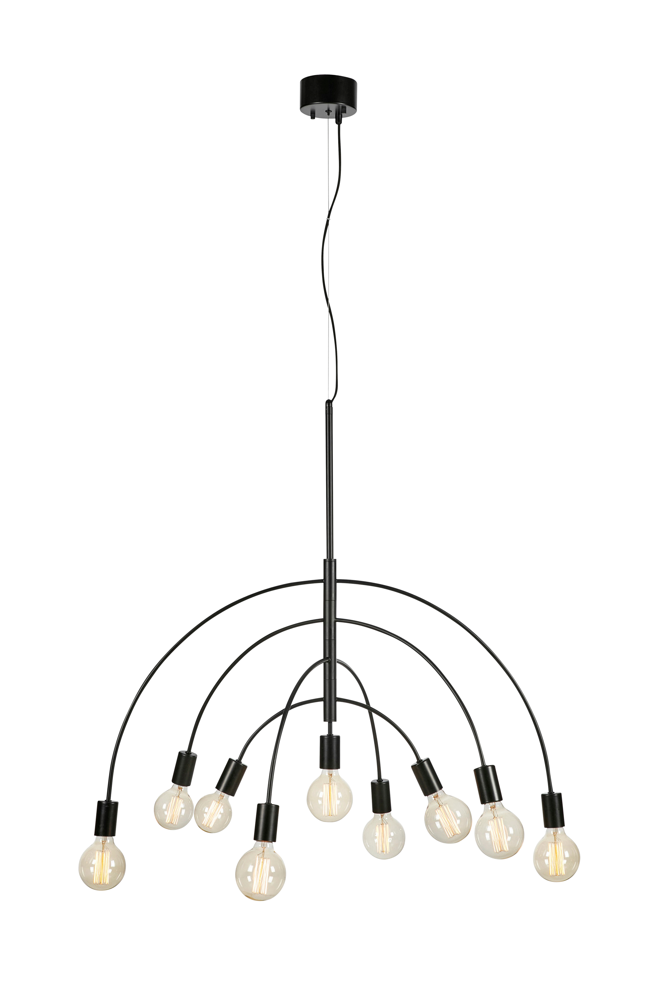 Pendeln Lavello från Markslöjd är i metall och har en diameter på 94 cm. 150 cm textilkabel. Krokupphängning. Ljuskällor ingår ej. Design Joakim Thedin.