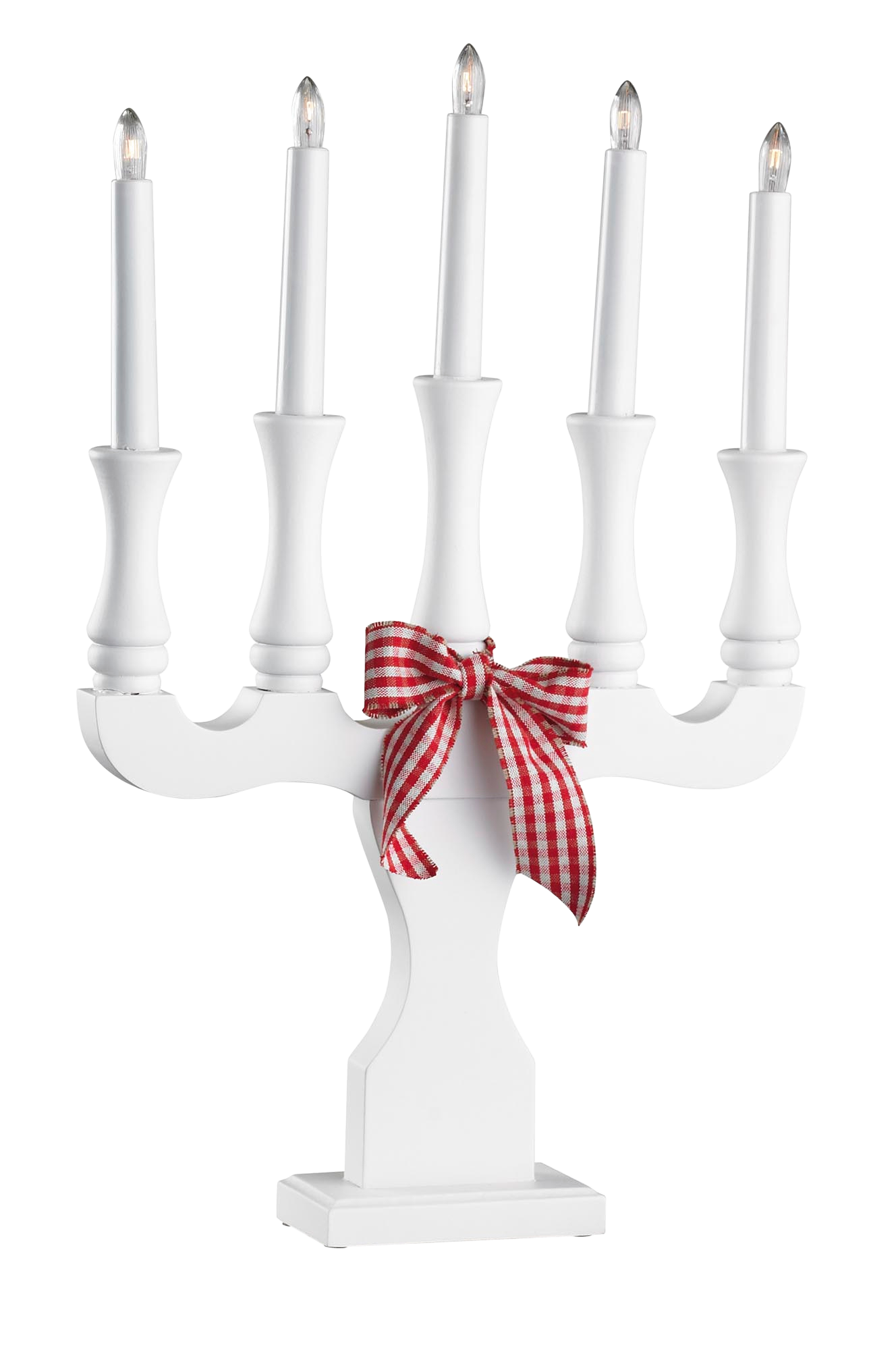 Mått: Bredd 49 cm. Djup 31 cm. Höjd 65 cm. Med dekoration. 5 lampor ingår.