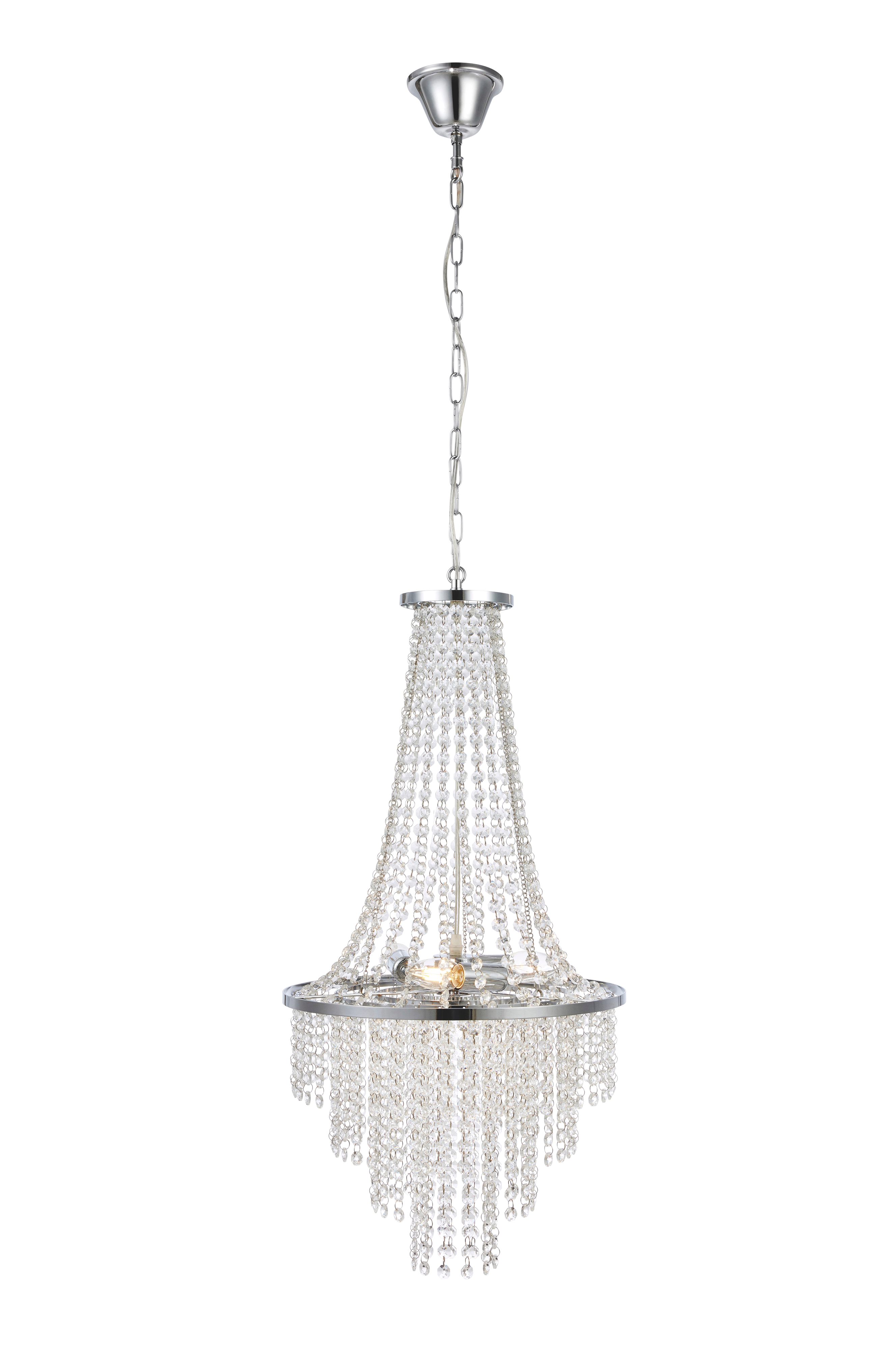 Allington takkrona i metall och klara prismor i glas. Monteras med takkrok. 1,5 meter transparent kabel. 3xE14, Max 25W. Takkontakt och ljuskällor ingår ej. Jordad.