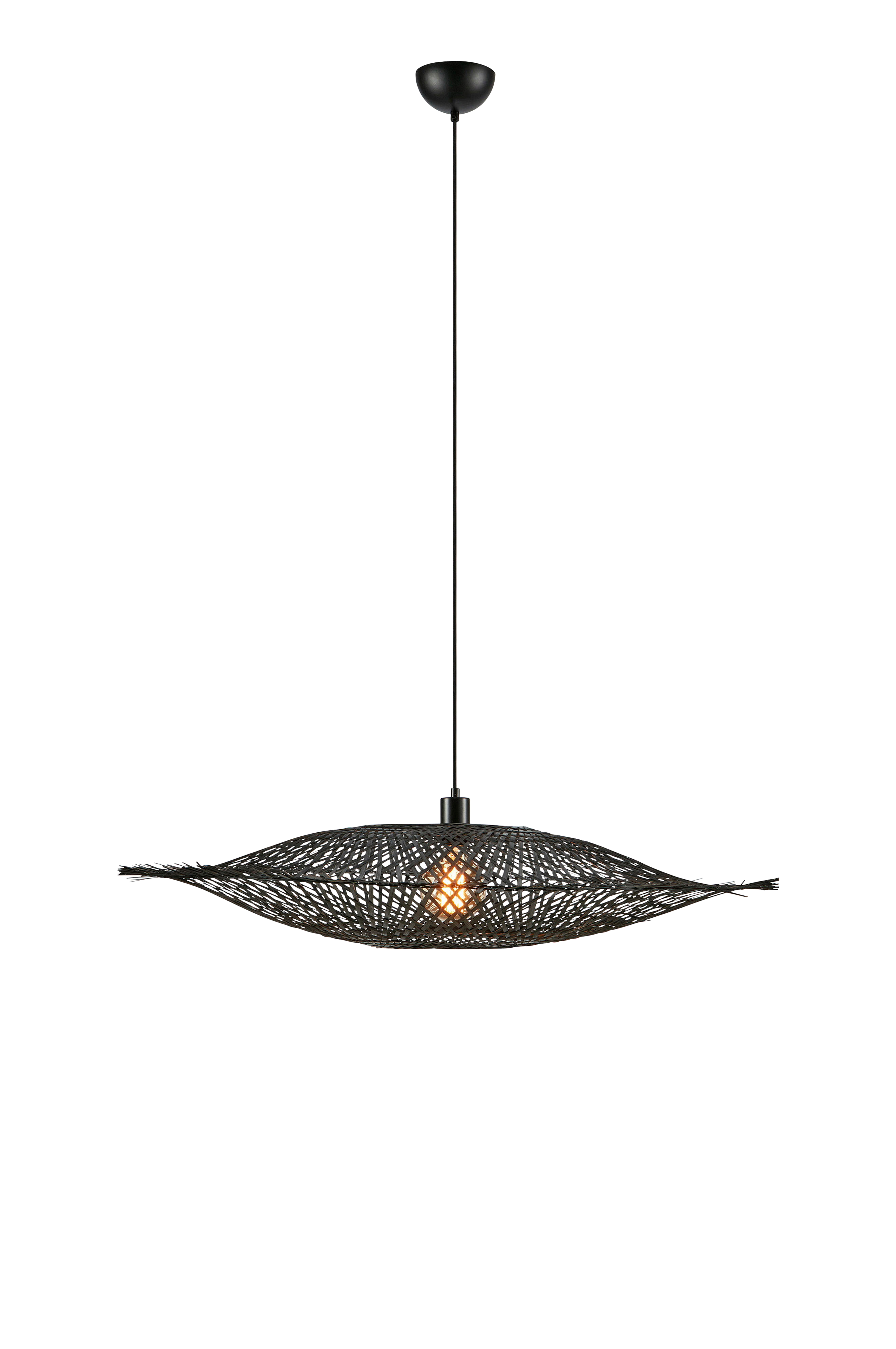 Kumo pendel från markslöjd. Bas i metall och skärm i bambu. Diameter 92 cm. 1,5 m textilkabel. Krokupphäng. Klass1 - jordad. Direktkoppling, takkontakt medföljer ej. 1xE27, max 40w. Ljuskälla ingår ej.