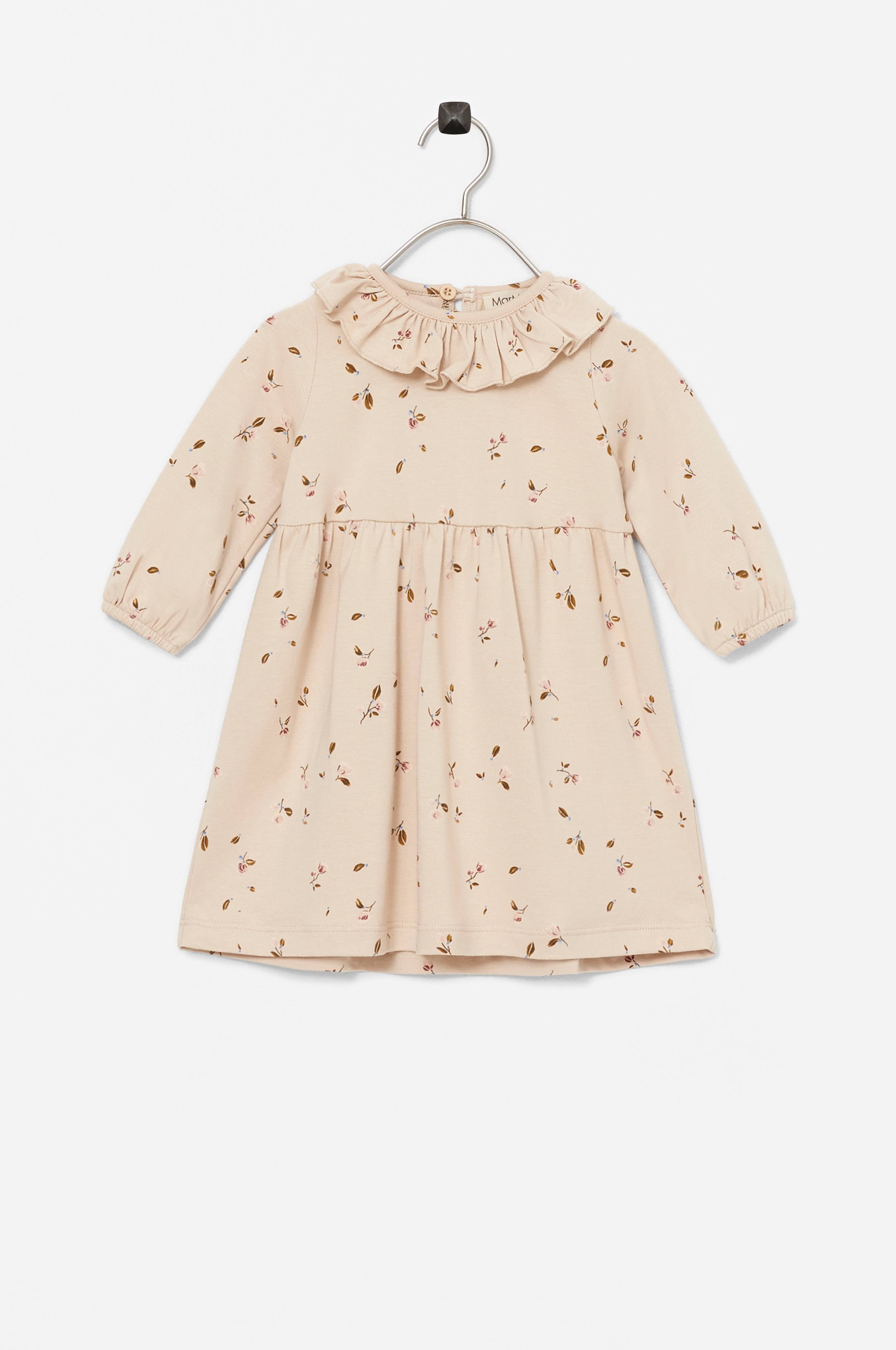 • Klänning i mjuk trikå • Rund hals med volang • Långa ärmar med elastiska ärmslut • Sprund med knapp i nacken • Produkten är certifierad enligt STANDARD 100 by OEKO-TEX®. Certifieringen garanterar att produkten är testad och fri från ämnen som kan vara skadliga för hälsan och miljön. Licensnummer & testinstitut: 14.HTR.46673 HOHENSTEIN HTTI