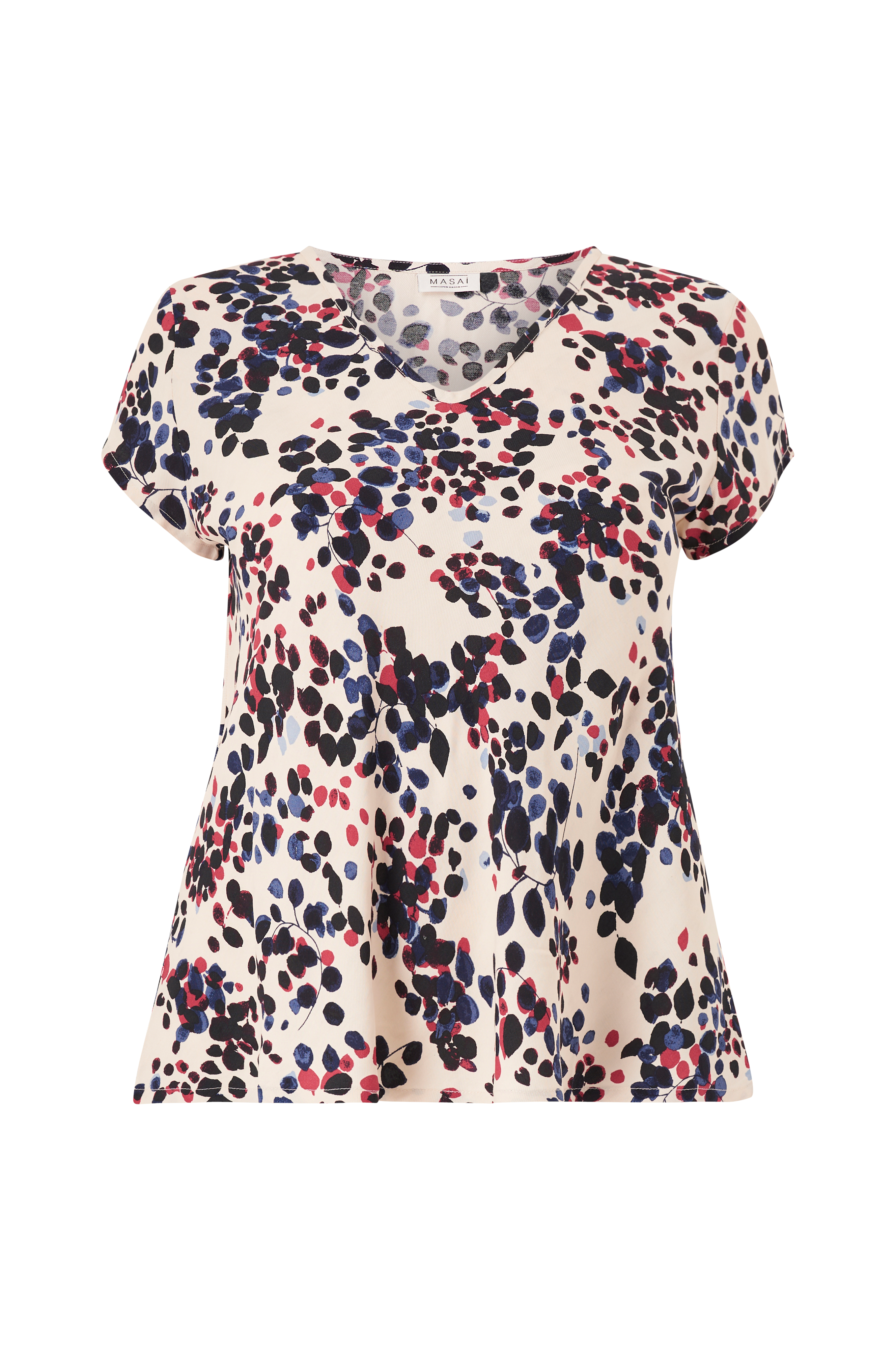 • Mönstrad blus i viskos• Korta ärmar• V-ringning